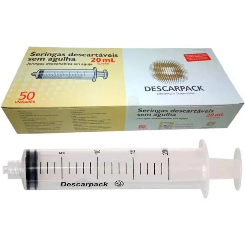 SERINGA 20ML SEM AGULHA LUER LOCK KIT 200UN - Descarpack Indicações: Desenvolvida para aplicação de medicamentos pelas vias hipodérmica, subcutânea, intramuscular e endovenosa em hospitais, clínicas, laboratórios, farmácias e clínicas veterinárias. Características: