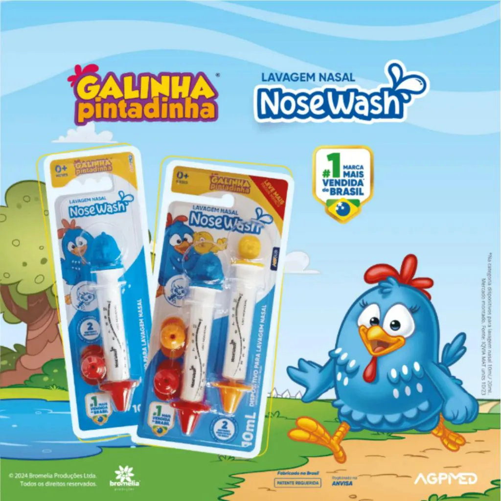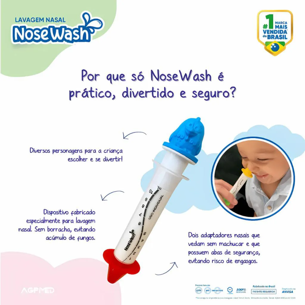 A seringa infantil Nosewash foi especialmente desenvolvida para lavagem nasal em bebês e crianças. Com personagens lúdicos em miniatura no próprio dispositivo, ela traz adaptadores nasais que protegem o nariz. Desenvolvido e fabricado no Brasil, esta seringa conta com 2 adaptadores nasais e promove uma lavagem mais divertida e segura.