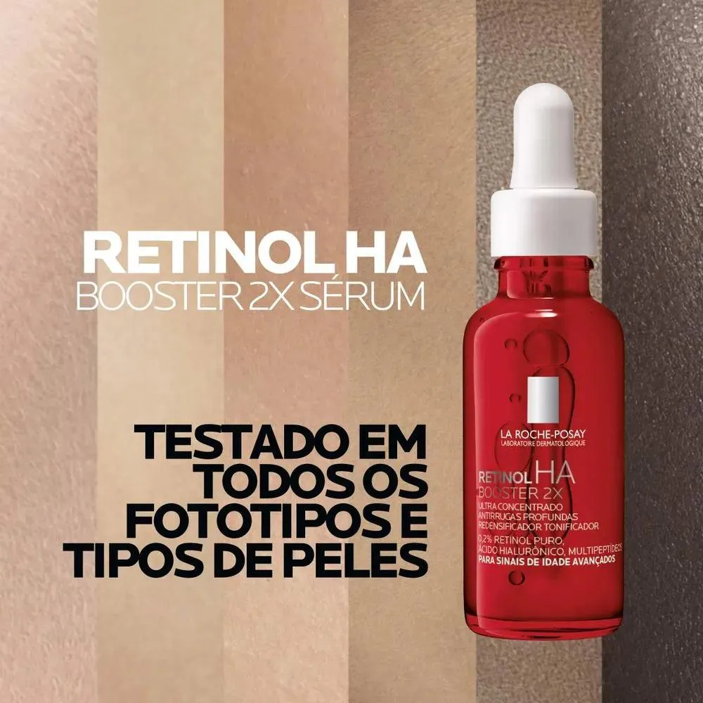 O Retinol HA Booster 2× da La Roche-Posay é um sérum antirrugas de alta performance, formulado com o dobro de Retinol Puro¹ e Ácido Hialurônico. Indicado para todos os tipos e tons de pele, incluindo as sensíveis, ele combate rugas profundas, estimula a renovação celular e aumenta a produção de colágeno, melhorando firmeza, elasticidade e uniformidade da pele.