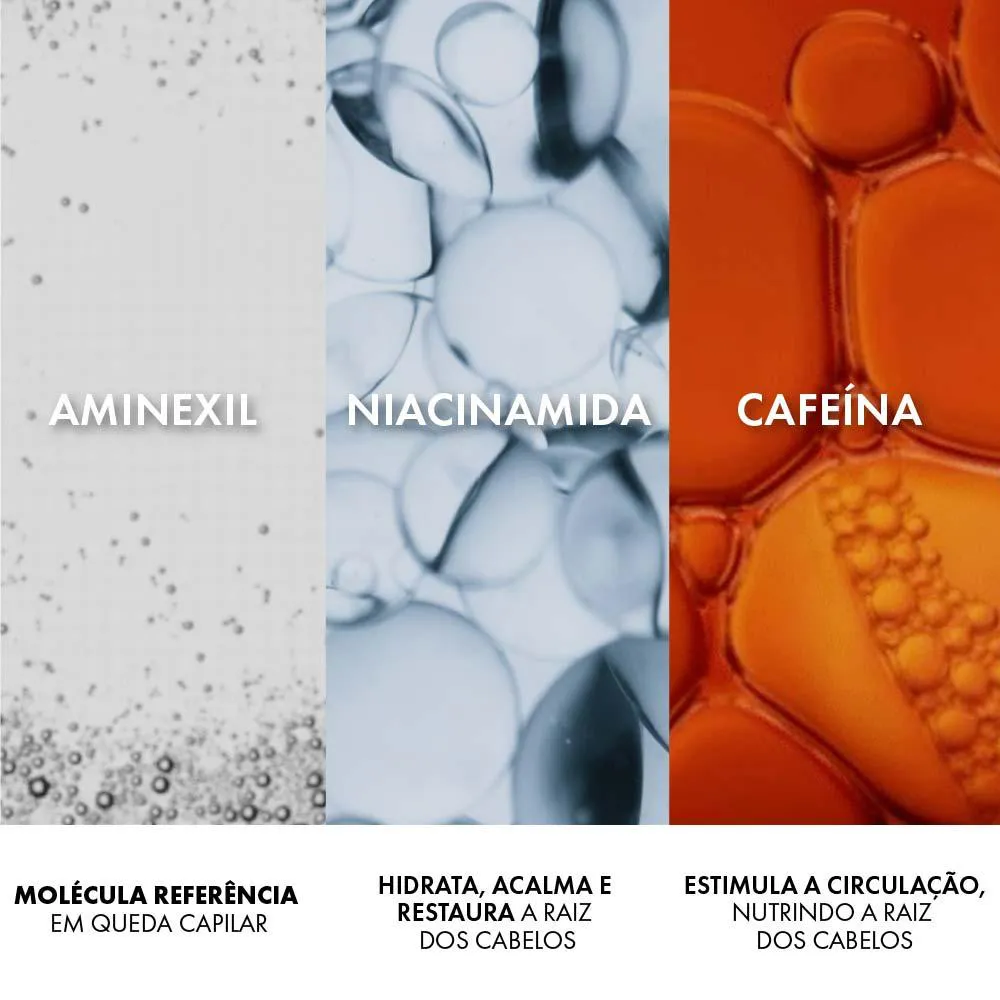 Aminexil, Niacinamida e Cafeína.