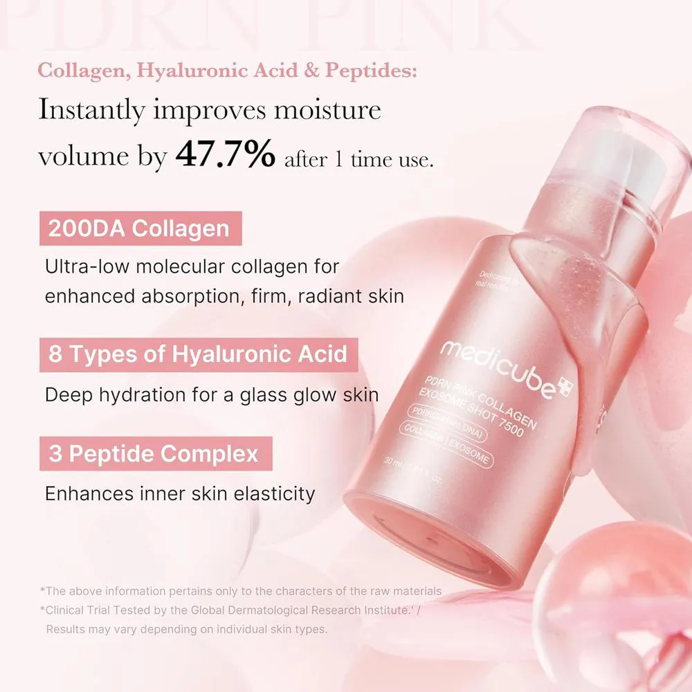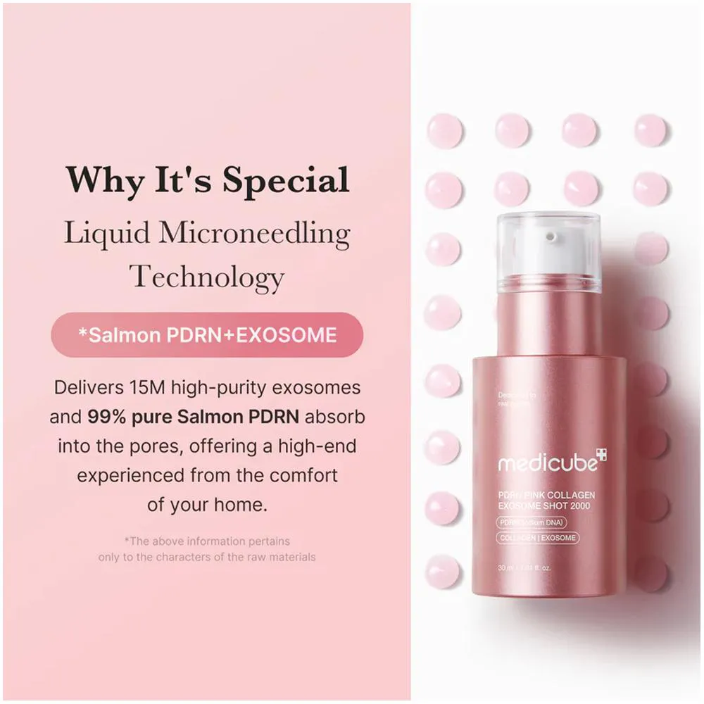 Medicube PDRN Pink Exosome Shot Serum 7500, sérum facial 30 ml para rotina de skincare, textura leve e rápida absorção