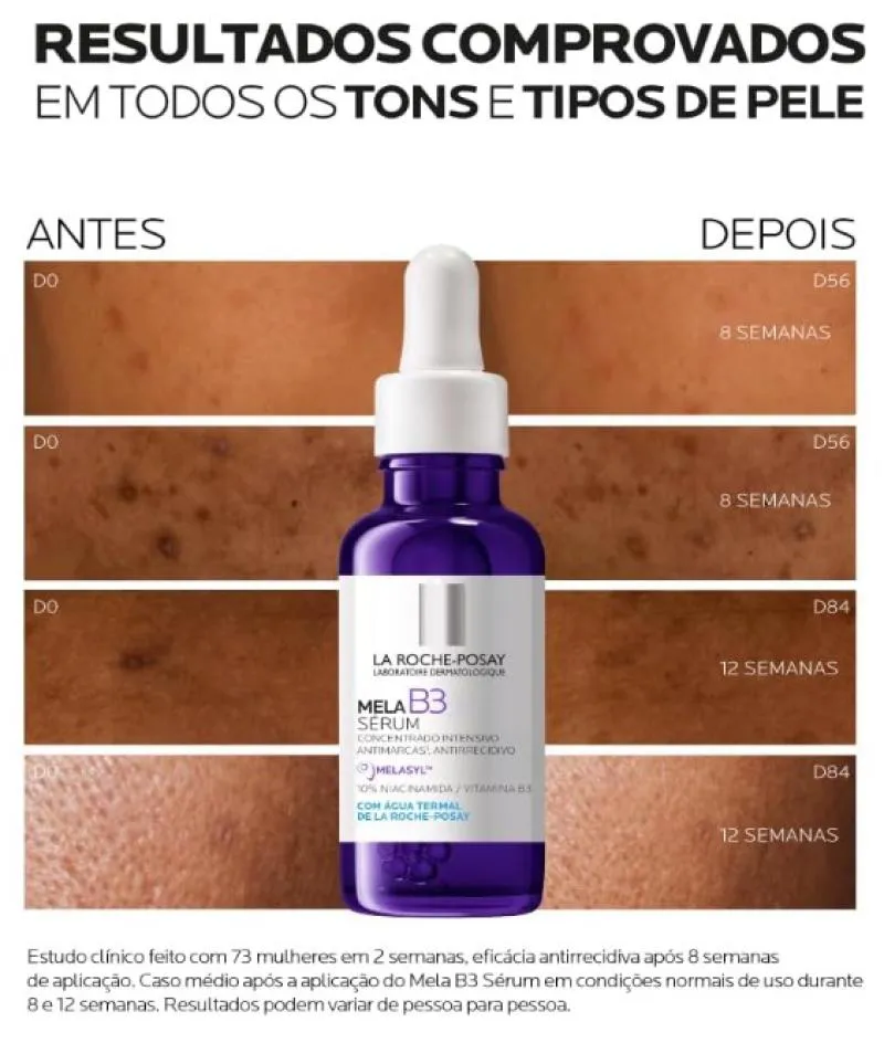 MelaB3 Sérum é o novo sérum concentrado Antimanchas enriquecido com Melasyl™, o mais novo e exclusivo ativo da La Roche-Posay, e 10% de Niacinamida.