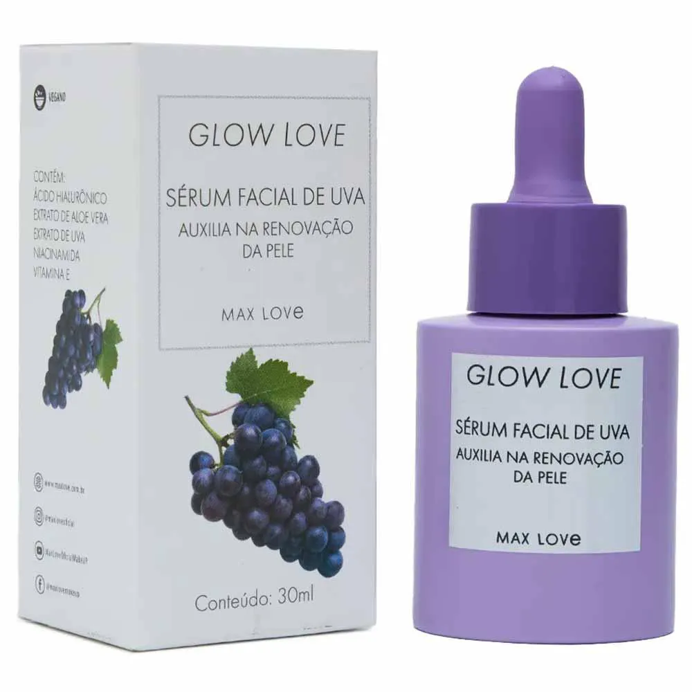 O Sérum Facial de Uva Max Love Glow Love é um tratamento concentrado, desenvolvido para potencializar os cuidados diários com a pele. Com uma textura leve e rápida absorção, este sérum atua na renovação da pele, proporcionando maciez e sedosidade. Ideal para tratar necessidades específicas como manchas, acne, linhas finas, oleosidade e desidratação.