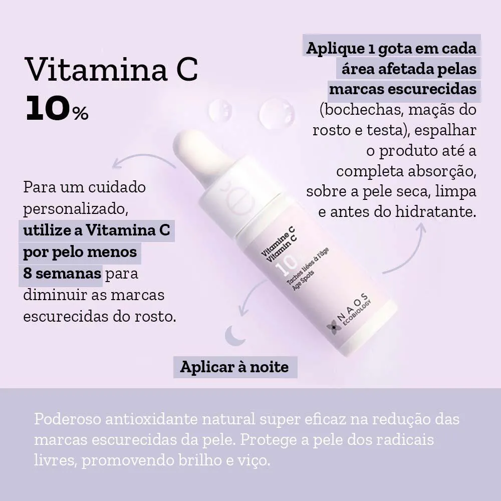 A vitamina C pura exerce uma ação sobre a síntese da melanina para reduzir visivelmente as marcas de pigmentação que surgem com a idade e uniformizar a tez.