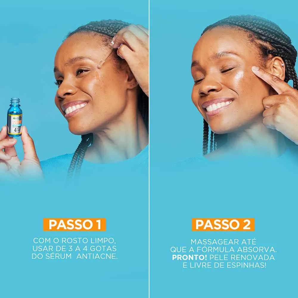 Com 4% de concentração de ativos poderosos [vitamina c + Ácido Salicílico + Niacinamida + AHA] para combater a acne e reduzir marcas ao mesmo tempo.