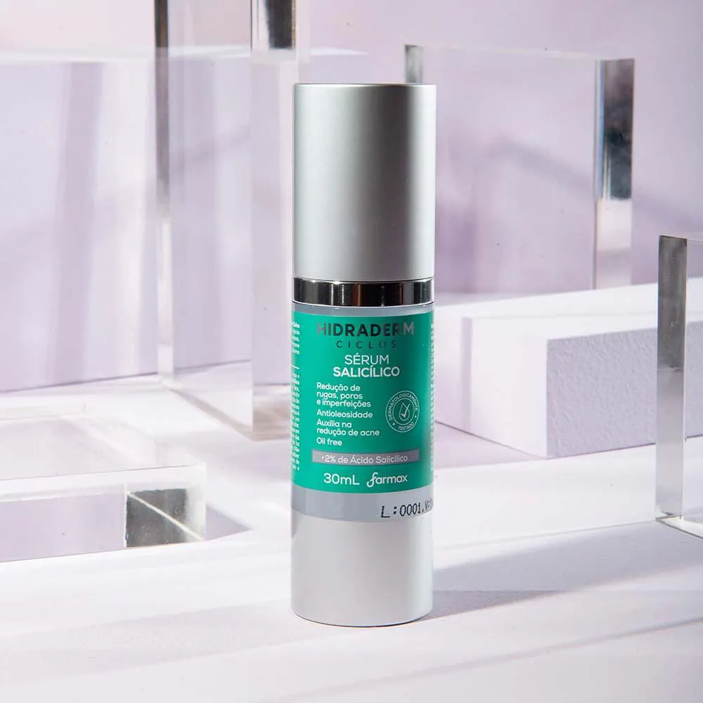 O Sérum Ácido Salicílico Hidraderm Ciclos 30ml tem ação antioleosidade, reduzindo poros e imperfeições. Sua fórmula combina ativos que agem na prevenção de acne e cravos e deixam o tom da pele mais uniforme.