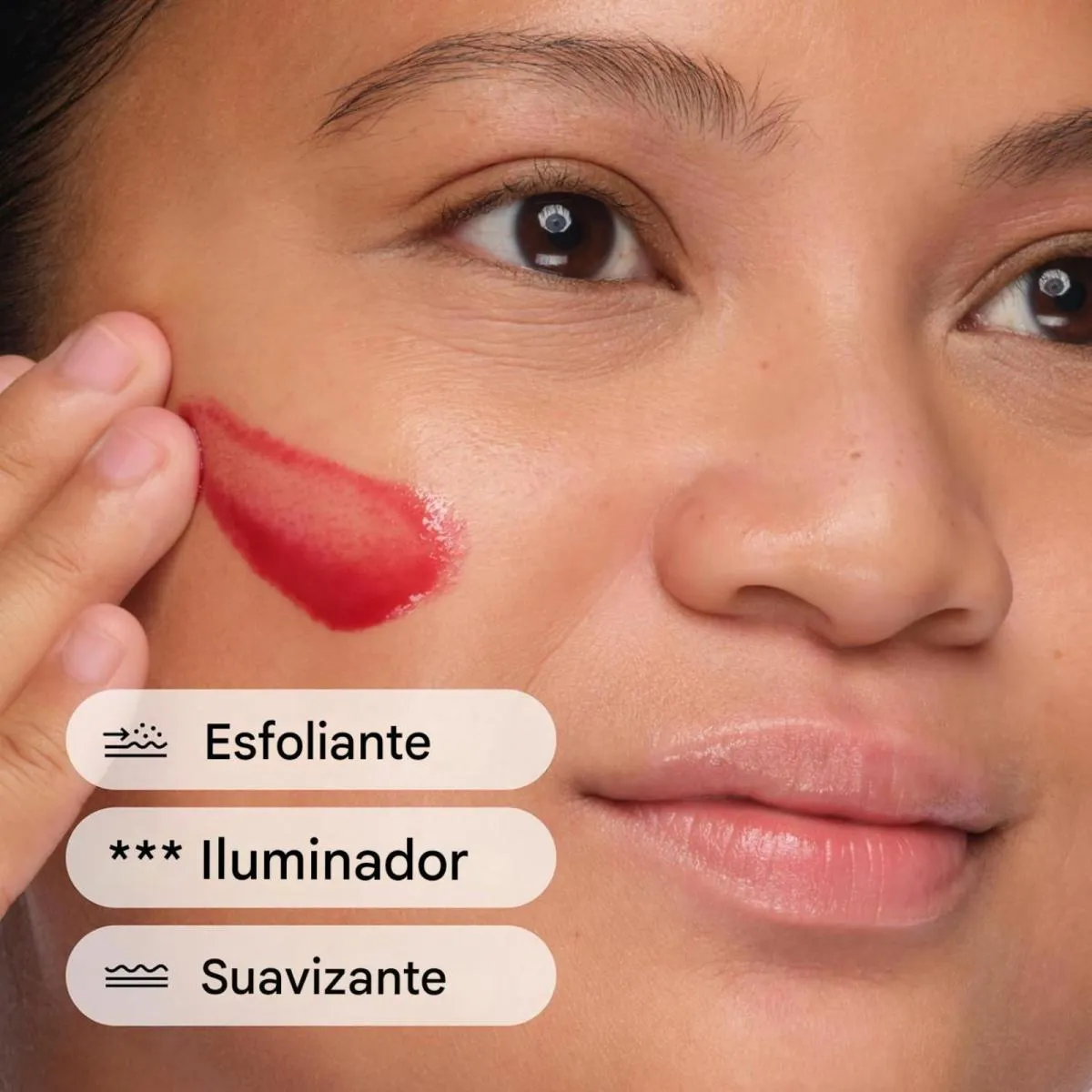 - Promove luminosidade e uniformidade do tom da pele.