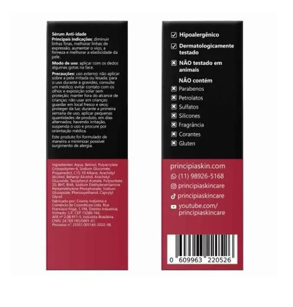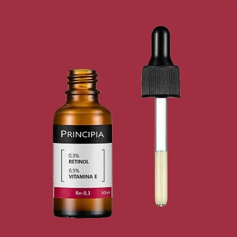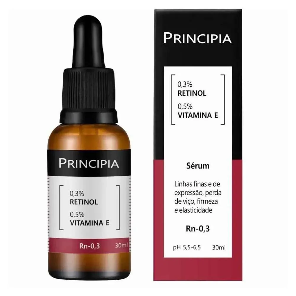Sérum Facial Principia Rn-0,3 contém 0,3% de Retinol e 0,5% de