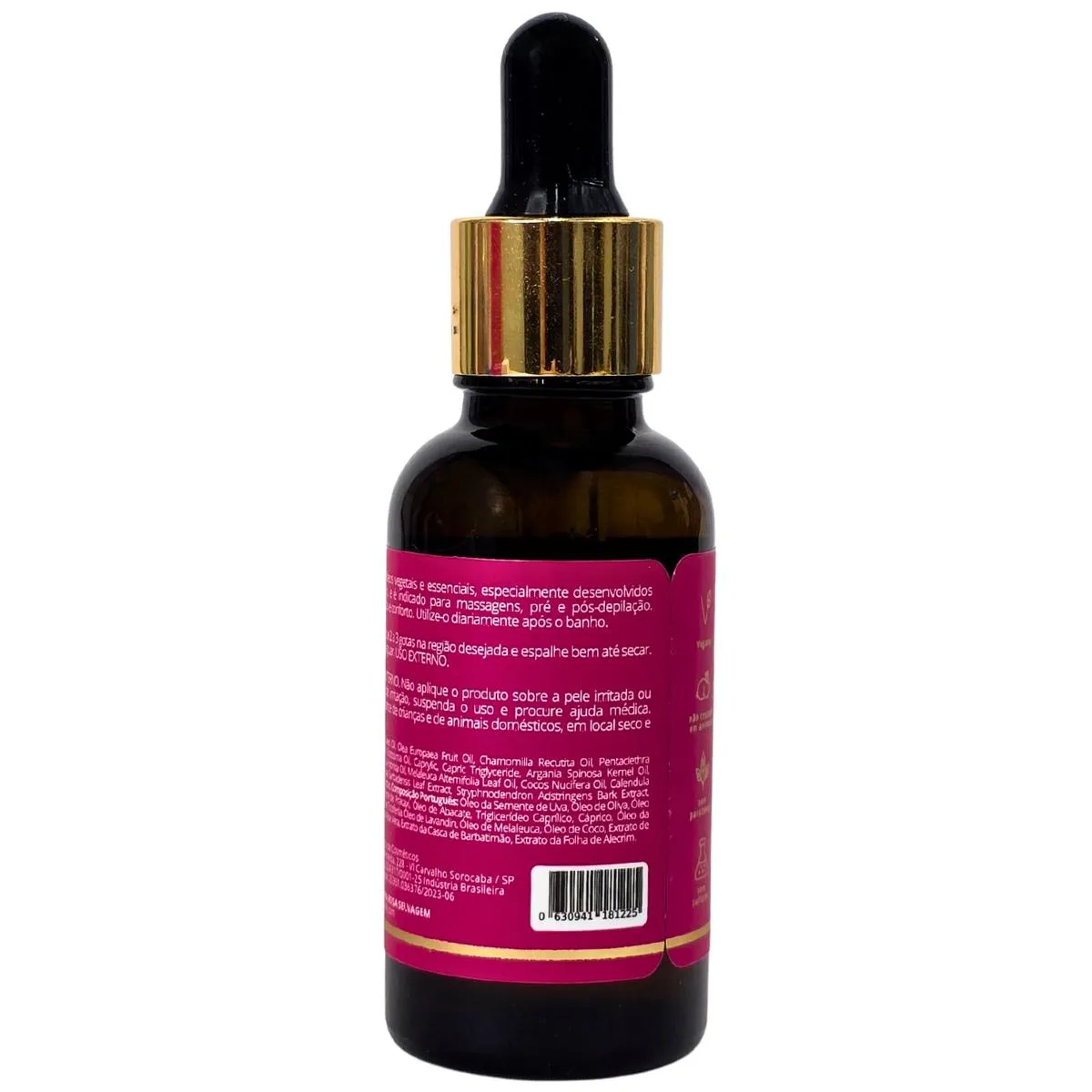 Composição: vitis vinifera seed oil/óleo da semente de uva, olea europaea fruit oil/óleo de olivia, chamomilla recutita oil/óleo de camomila, pentaclethra macroloba seed oil/óleo da semente de pracaxi, persea gratissima oil/óleo de abacate, caprylic/capric triglyceride/triglicerídeo caprílico/cáprico argania spinosa kernel oil/óleo de amêndoa de argan, tocopheryl acetate/acetato de tocoferila, lavandula hybrida oil/óleo de lavandin, melaleuca alternifolia leaf oil/óleo de melaleuca, cocos nucifera oil/óleo de coco calendula officinalis flower extract/extrato da folha de aloe vera, stryphnodendron adstringens bark extract/extrato da casca de barbatimão, rosmarinus officinalis leaf extract/extrato da folha de alecrim.