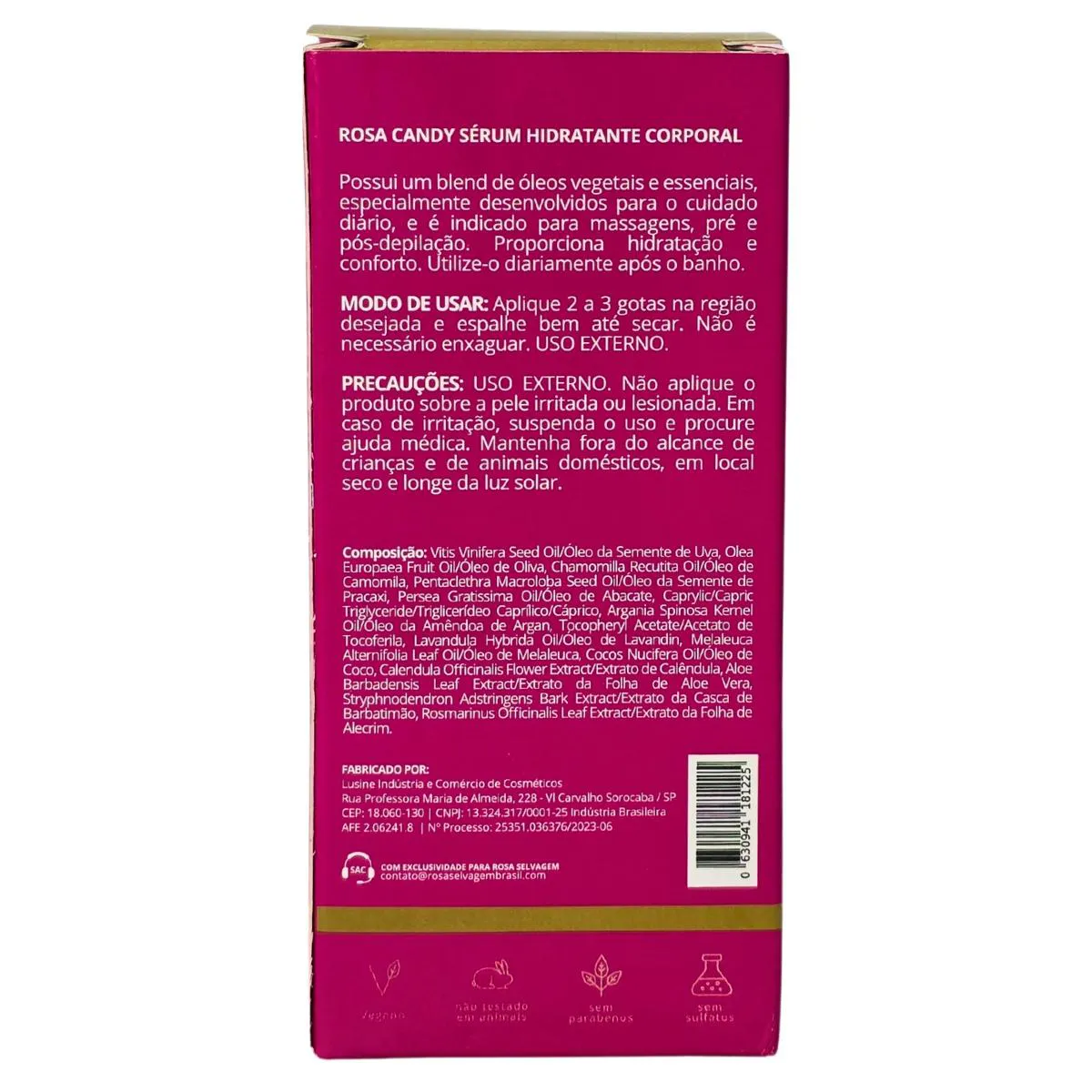 Sérum Hidratante Corporal Rosa Candy Vegano Rosa Selvagem 30Ml