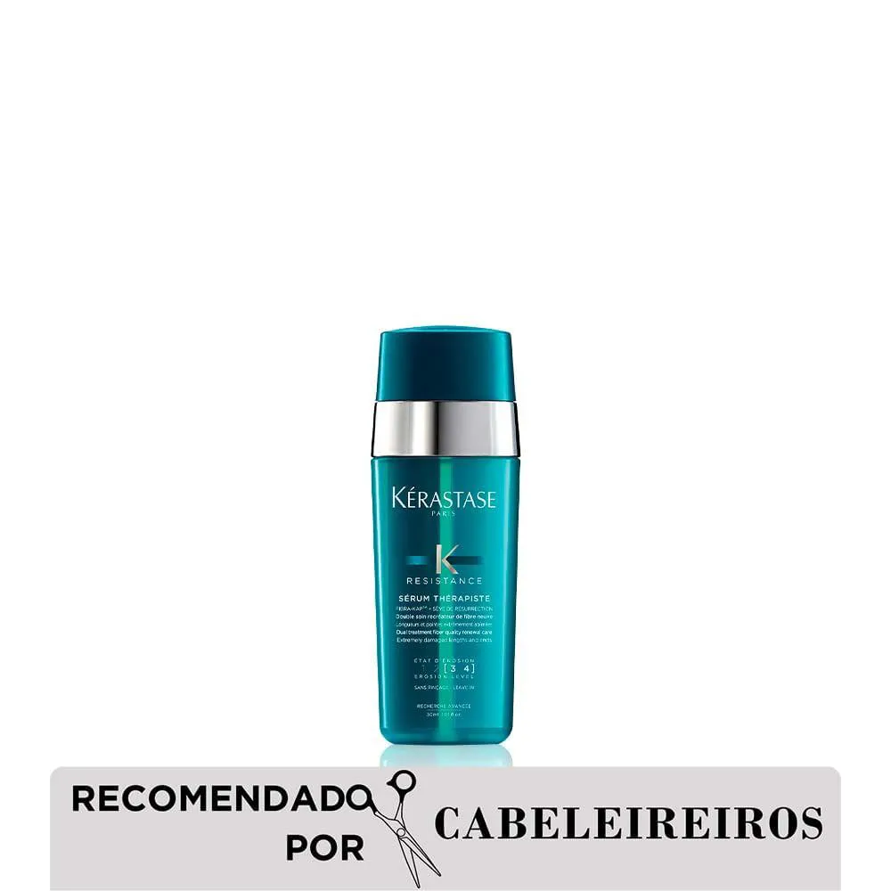 Recupere a força e a vitalidade dos fios com o Kérastase Résistance Thérapiste Sérum Reconstrutor, tratamento de alto desempenho para cabelos extremamente danificados e com pontas duplas. Desenvolvido para restaurar a fibra capilar de dentro para fora, oferece proteção térmica de até 230°C, ideal para uso com secadores, chapinhas e modeladores. Sua fórmula contém Sève de Résurrection, ativo que regenera profundamente a fibra, minimizando a quebra e deixando os fios mais resistentes.