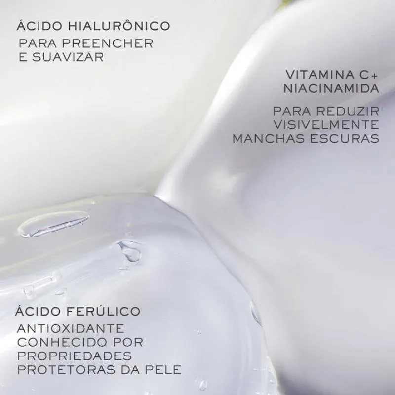 - Combina ácido hialurônico, vitamina C e ferúlico.