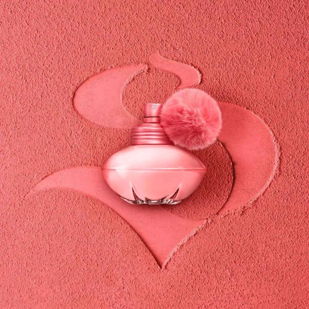 Design do Frasco: O frasco delicado e curvilíneo reflete a essência romântica da fragrância.