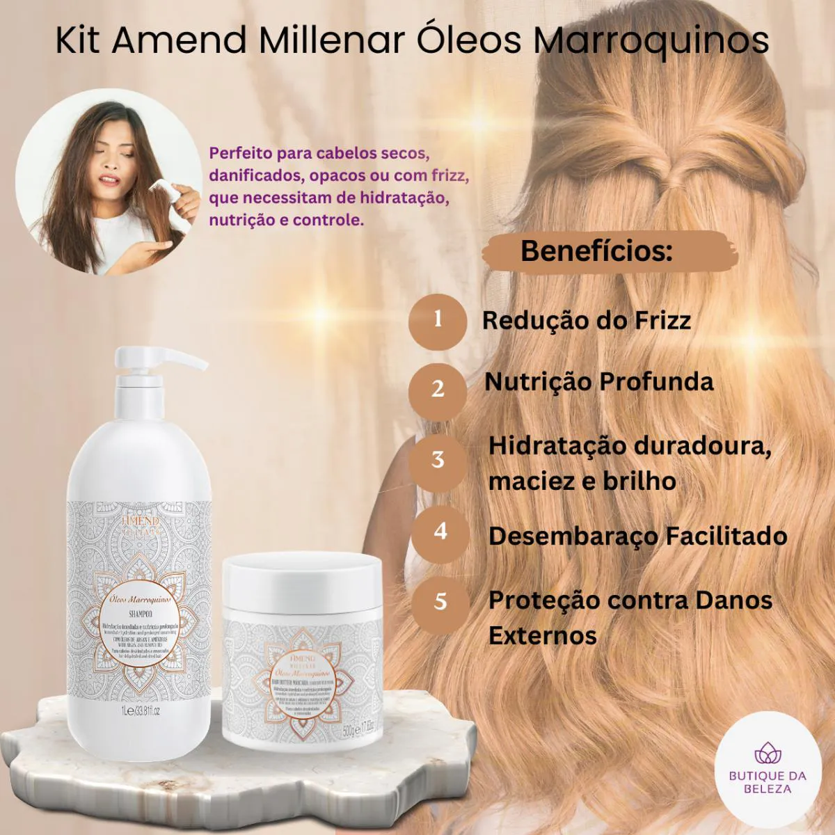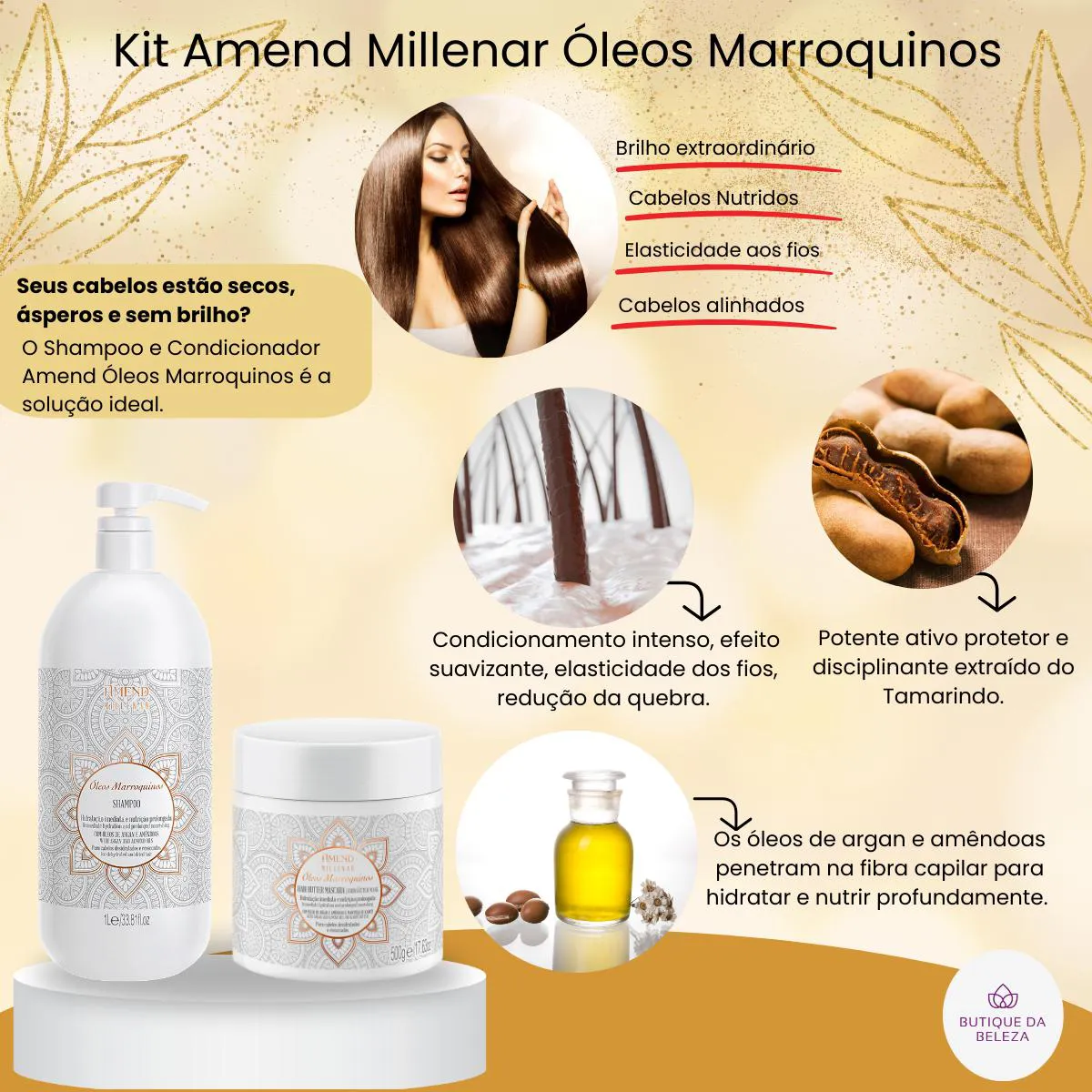 ESTE KIT CONTÉM shampoo Amend Óleos Marroquinos 1000ml Máscara Amend Óleos Marroquinos 500g Somos a BUTIQUE DA BELEZA