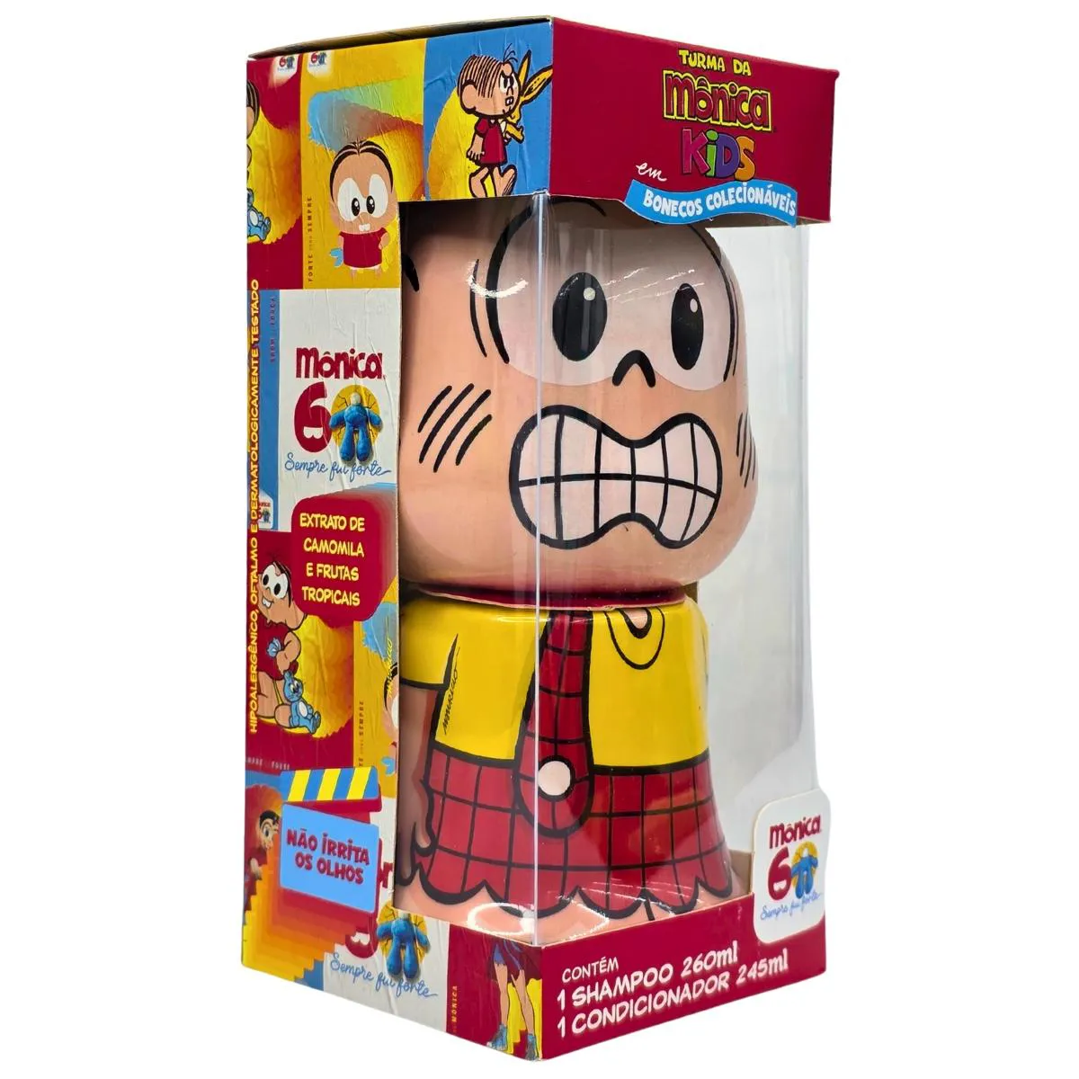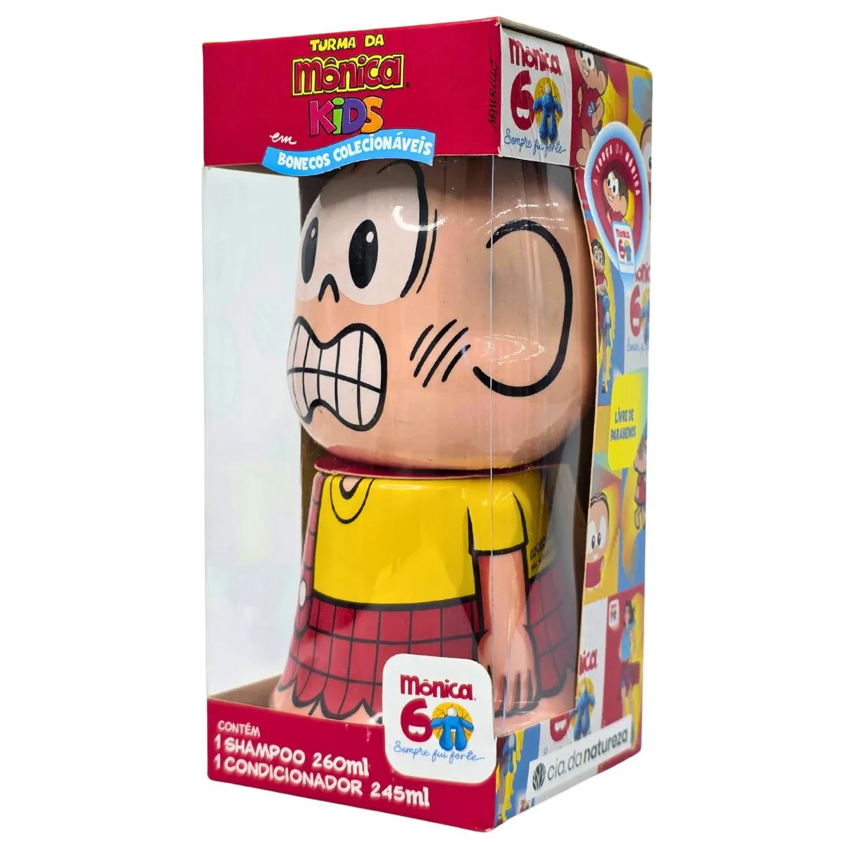 • Para celebrar os 50 anos da Mônica, personagem onipresente e icônica da Mauricio de Souza Produções, a Cia da Natureza renova as embalagens dos bonecos colecionáveis. Sua fórmula possui ingredientes suaves e que não irritam o couro cabeludo. O Shampoo Todos os tipos de Cabelos limpa com suavidade, deixando os cabelos macios, brilhantes e com um delicioso cheirinho! O Condicionador Todos os tipos de Cabelo ajuda a desembaraçar os fios, deixando os cabelos macios e brilhantes.
