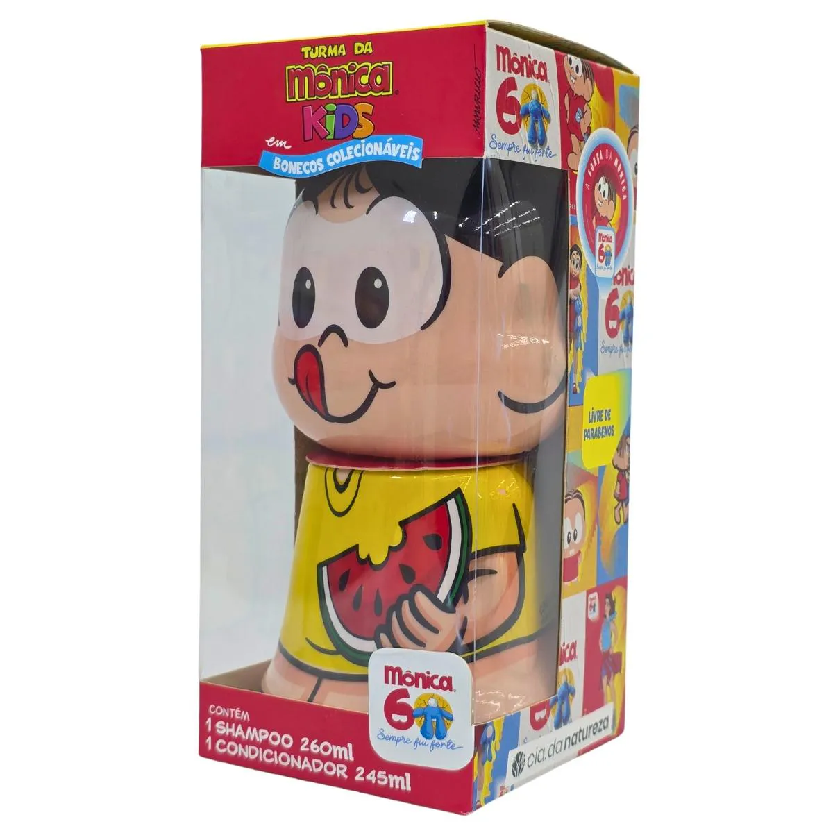 • Para celebrar os 50 anos da Mônica, personagem onipresente e icônica da Mauricio de Souza Produções, a Cia da Natureza renova as embalagens dos bonecos colecionáveis. Sua fórmula possui ingredientes suaves e que não irritam o couro cabeludo. O Shampoo Todos os tipos de Cabelos limpa com suavidade, deixando os cabelos macios, brilhantes e com um delicioso cheirinho! O Condicionador Todos os tipos de Cabelo ajuda a desembaraçar os fios, deixando os cabelos macios e brilhantes.