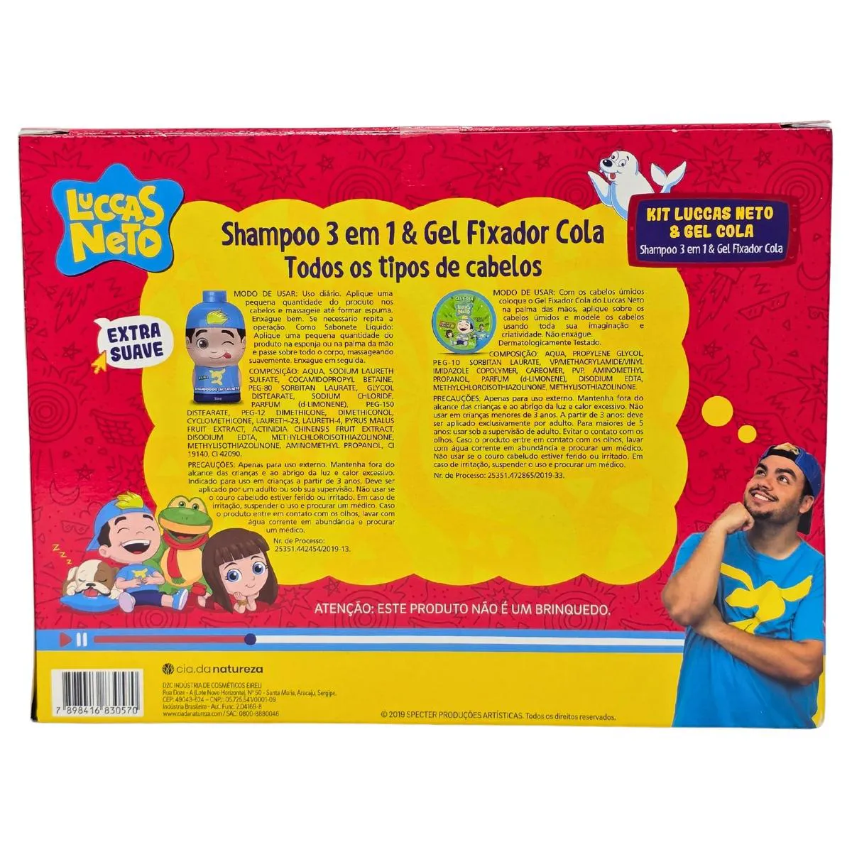 Shampoo 3 em 1 3D Todos os Tipos de Cabelos + Gel Cola os Aventureiros Luccas Neto Cia. da Natureza