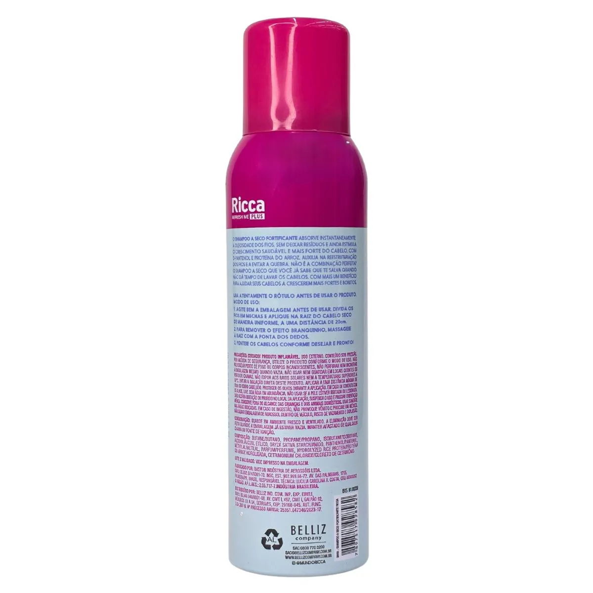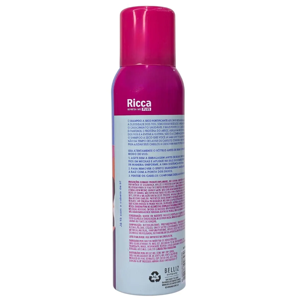 Composição: butane/butano, propane/prapano, isobutane/isobutano, alcohol/álcool étilico, oryza sativa starch/amido, panthenol/pantenol, methylal/metilal, parfum/perfume, hydrolyzed rice protein/proteína do arroz hidrolisada, cetrimonium chloride/cloreto de cetrimônio.