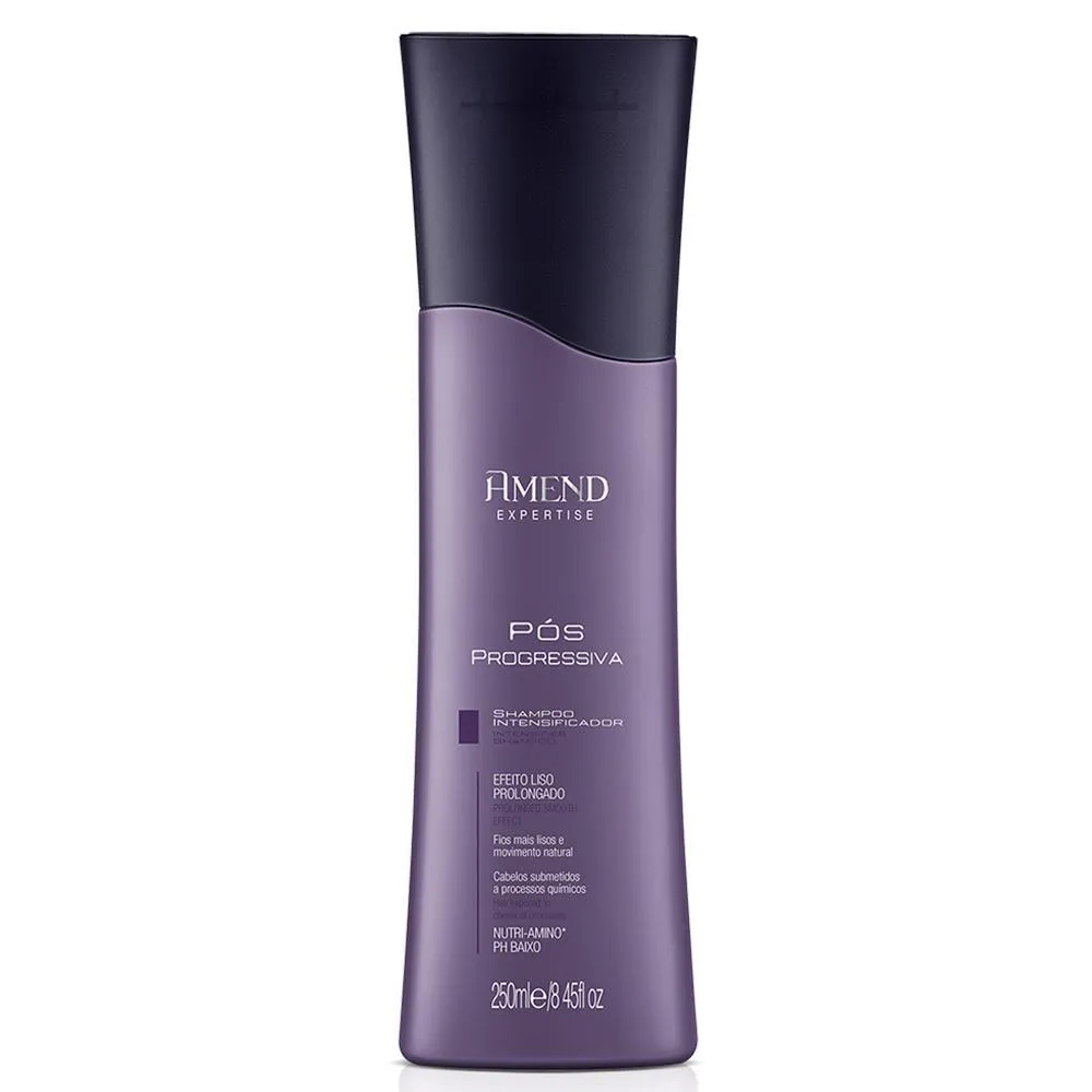 Amend - shampoo Intensificador Pós Progressiva 250mlConserva o PH natural dos cabelos, limpa os fios sem agredi-los. Controla a oleosidade do couro cabeludo. O efeito liso é prolongado. Com Nutri-Amino* Repara danos e repõe os aminoácidos perdidos. Promove brilho, maciez e movimento natural dos fios.- Limpa suavemente;