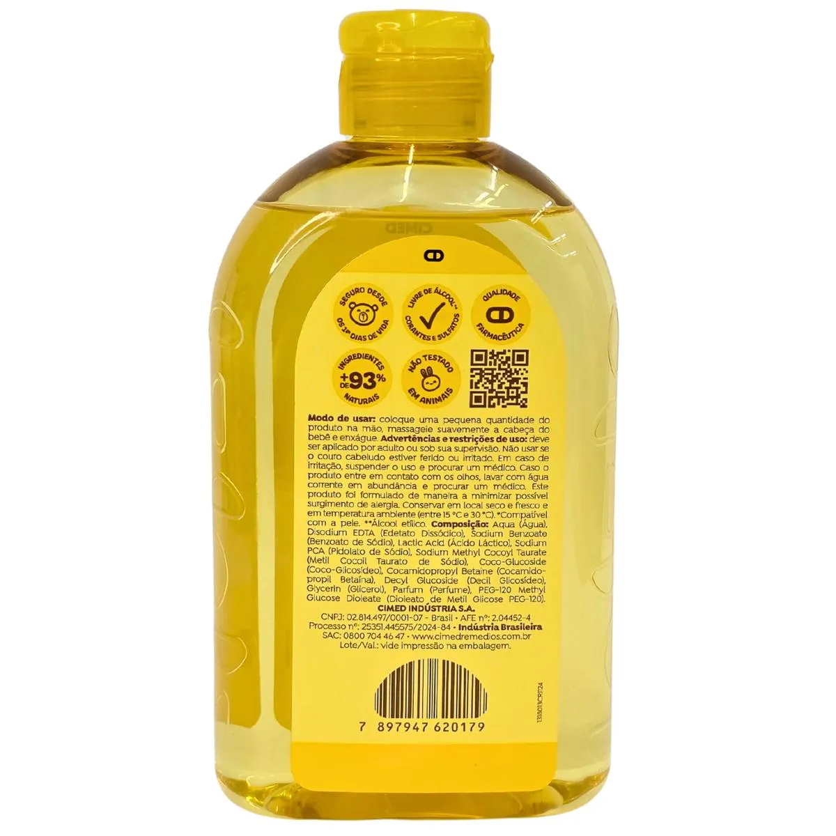 Modo de Uso: Coloque uma pequena quantidade do produto na mão, massageie suavemente a cabeça do bebê e enxágue.