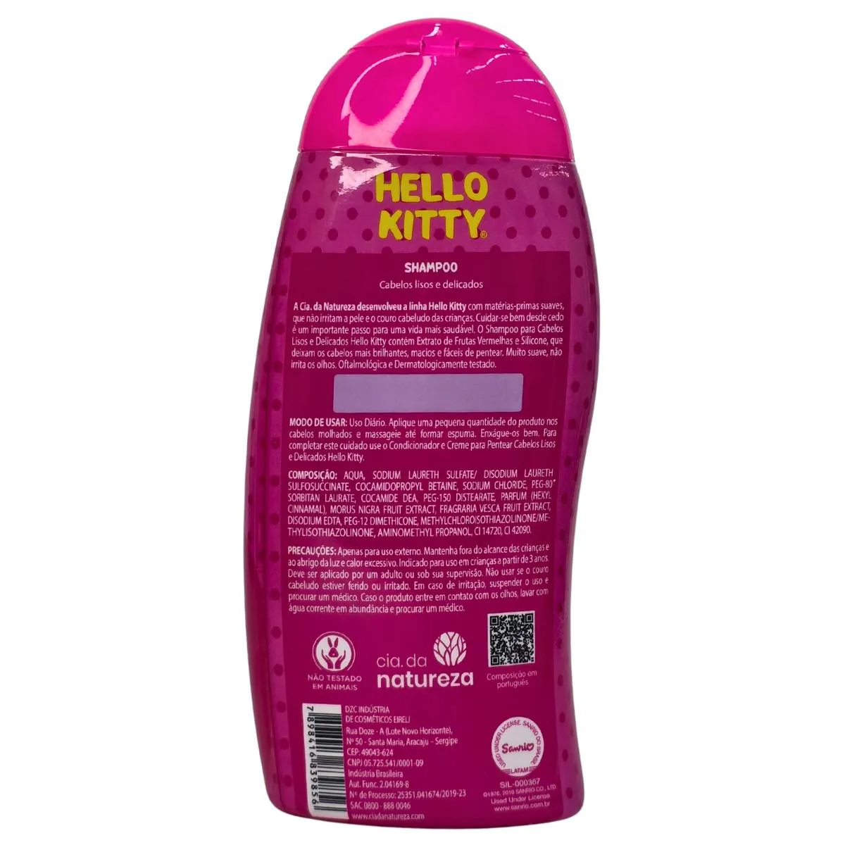 Finalidade O Shampoo Cabelos Lisos e Delicados Hello Kitty contém Extrato de frutas vermelhas e silicone, que deixam os cabelos mais brilhantes, macios e fáceis de pentear. Muito suave, não irrita os olhos.