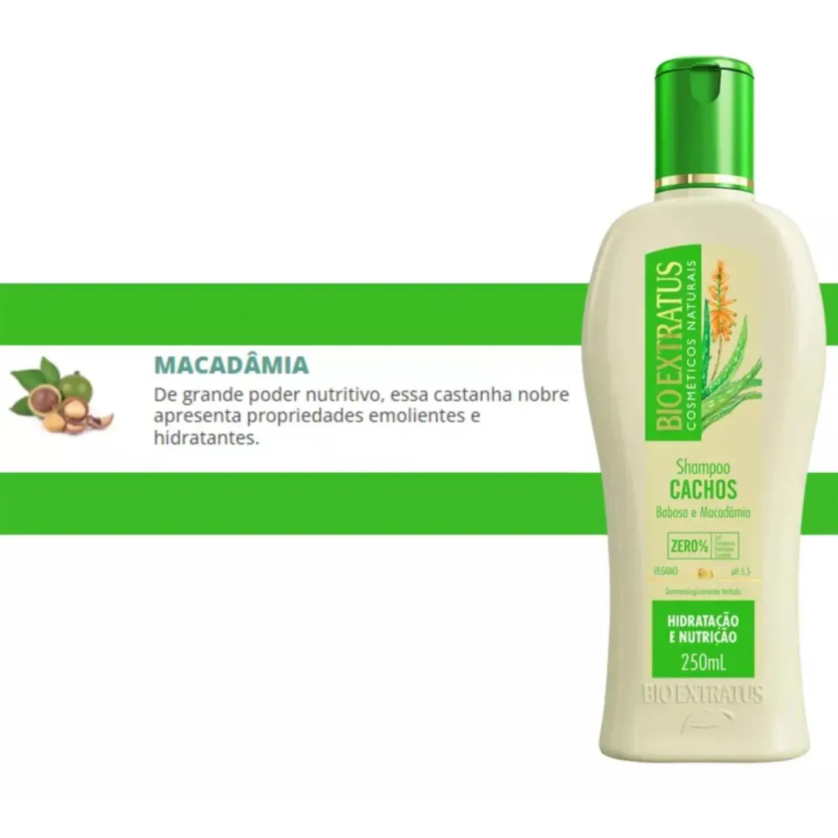shampoo Cachos 250ml – Bio Extratus O Shampoo Cachos da Bio Extratus foi desenvolvido especialmente para cabelos cacheados, ondulados e crespos. Sua fórmula suave limpa delicadamente os fios sem ressecar, enquanto ativos como babosa e macadâmia garantem hidratação, nutrição e definição desde a lavagem. · Fórmula suave, sem sulfatos agressivos · Rico em babosa e macadâmia, que hidratam e nutrem · Mantém os cachos definidos, macios e brilhantes · pH balanceado para cuidar da saúde do couro cabeludo · Livre de sal, parabenos, petrolatos, corantes e silicones Modo de uso: Aplique o shampoo nos cabelos molhados, massageie suavemente o couro cabeludo até formar espuma e enxágue bem. Se necessário, repita a aplicação. Conteúdo da embalagem: 1 Shampoo Cachos 250ml – Bio Extratus Imagens meramente ilustrativas. Todas as informações divulgadas são de responsabilidade exclusiva do fabricante/fornecedor.