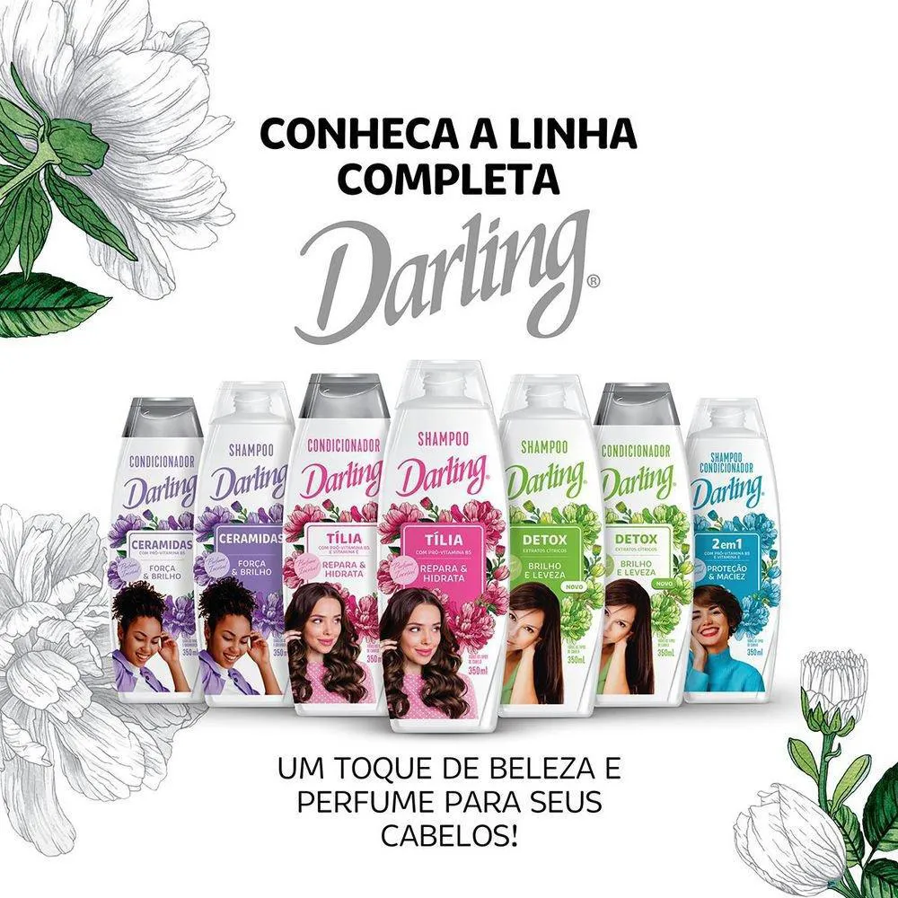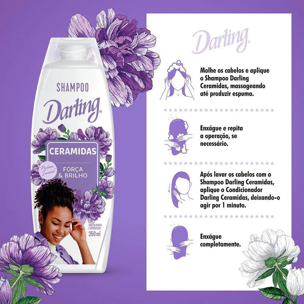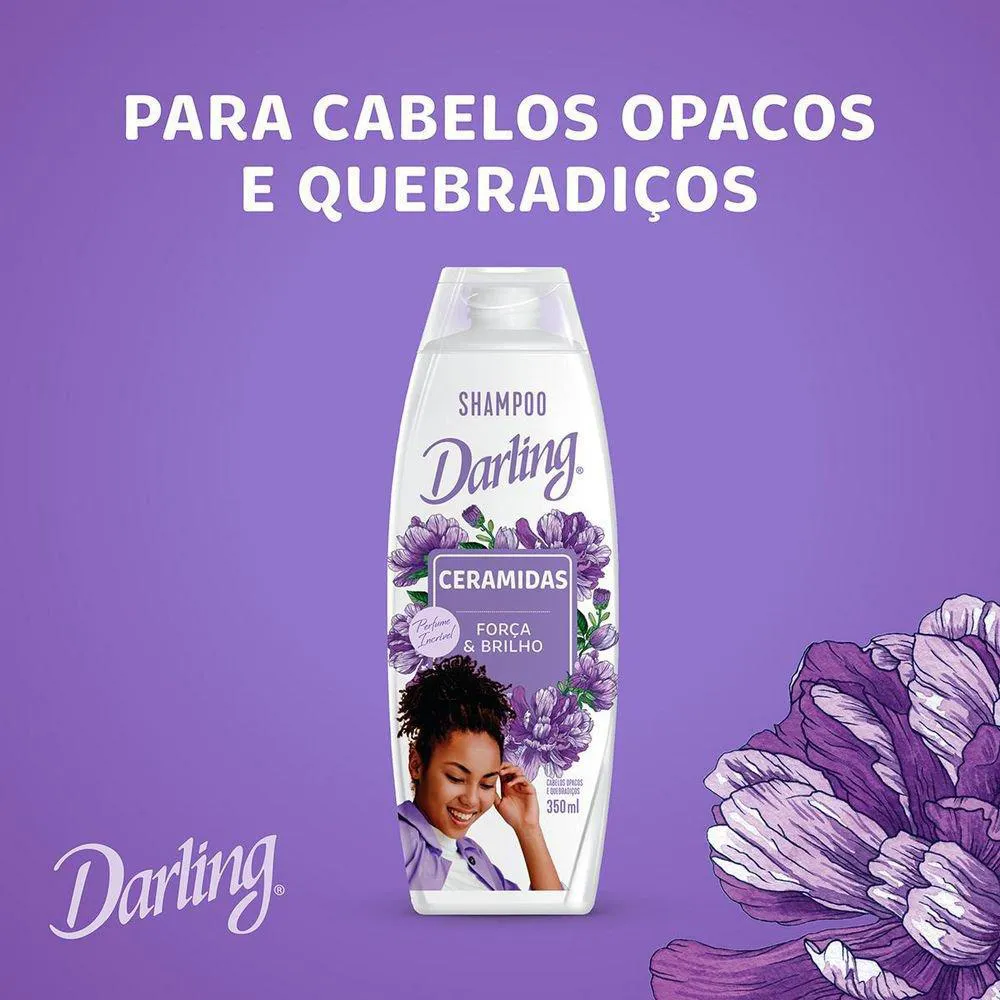 Esse shampoo Darling Ceramidas, para cabelos opacos e quebradiços, ajuda a restaurar as escamas abertas dos fios, deixando-os fortes e perfumados. Benefícios para você: Fórmula enriquecida com ceramidas. Proporciona força e brilho. Para cabelos opacos e quebradiços. Sem sal. Perfume incrível.