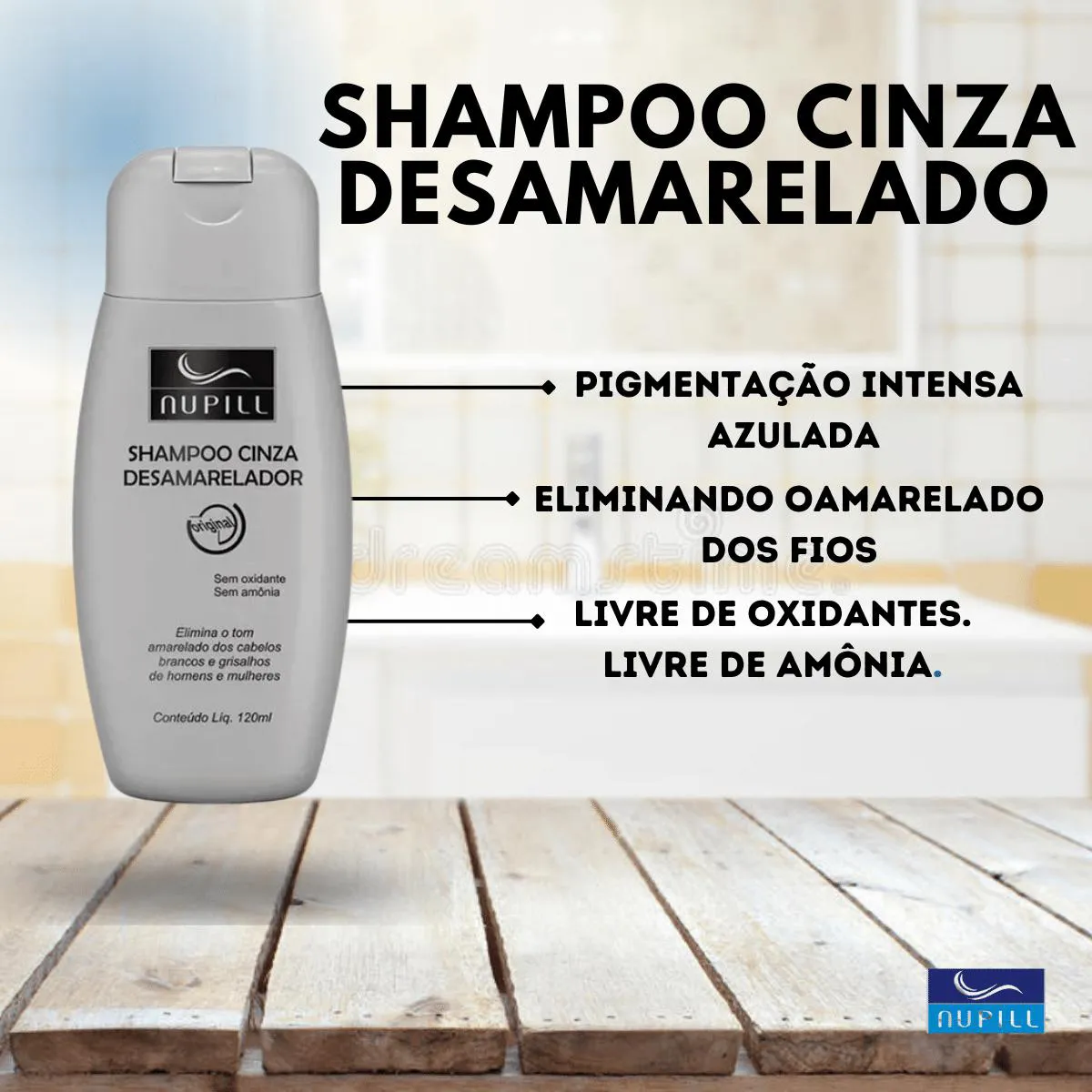 O que será enviado?01 Unidade shampoo Cinza Desamarelador Original Sem Oxidante/Amônia 120ml - Nupill