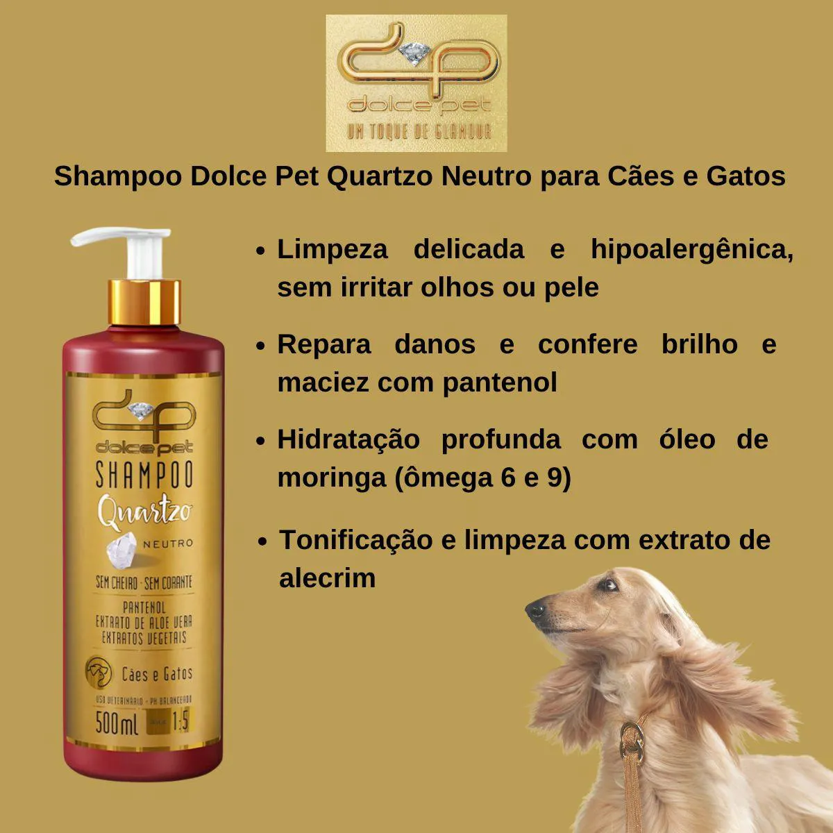 Shampoo Dolce Pet Quartzo Neutro para Cães e Gatos 500 Ml