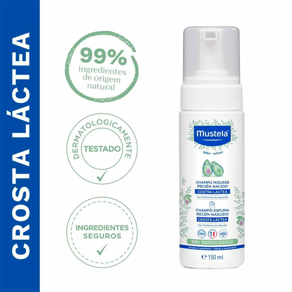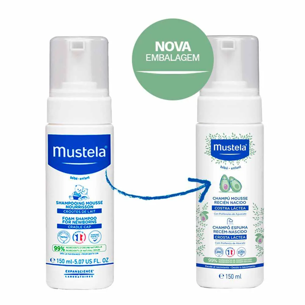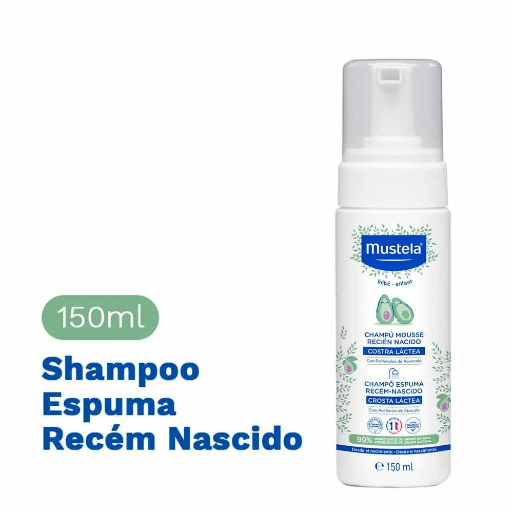 Shampoo Espuma Recém-Nascido Mustela foi especialmente desenvolvido para limpar e lavar o couro cabeludo dos recém-nascidos.