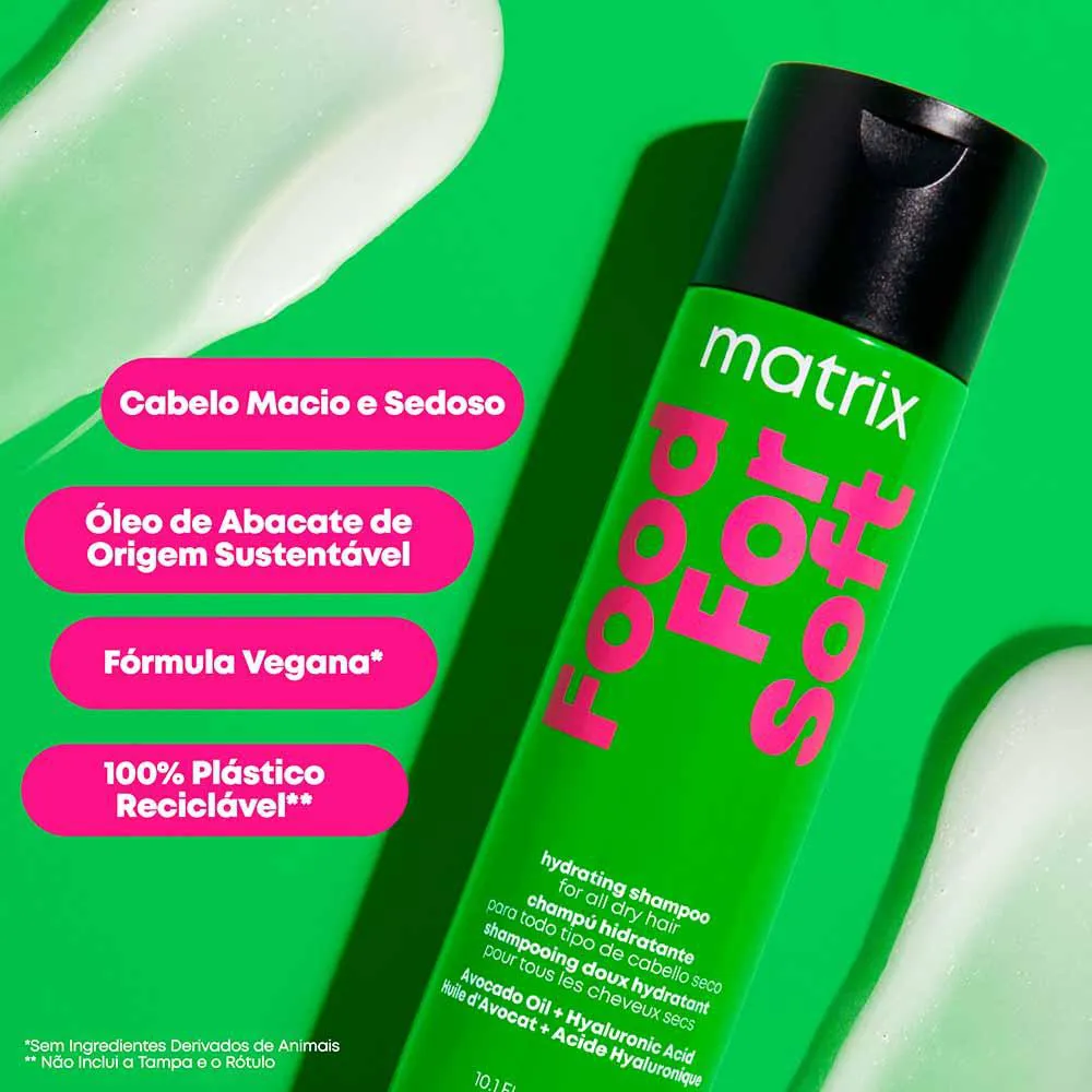 O Shampoo Hidratante Matrix Food For Soft é um produto especialmente desenvolvido para tratar cabelos secos, proporcionando hidratação profunda e duradoura. Sua fórmula inovadora garante 7 vezes mais hidratação, deixando os fios macios por até 72 horas quando utilizado em conjunto com o condicionador ou máscara da linha.Quais os benefícios do Shampoo Hidratante Matrix Food For Soft?