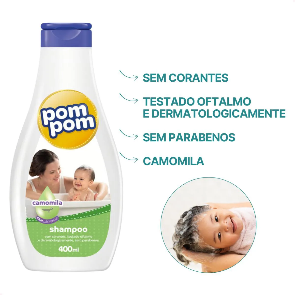 O Shampoo infantil Pom Pom Camomila foi desenvolvido para cuidar dos cabelos do bebê com suavidade e carinho, tornando a hora do banho um momento especial.
