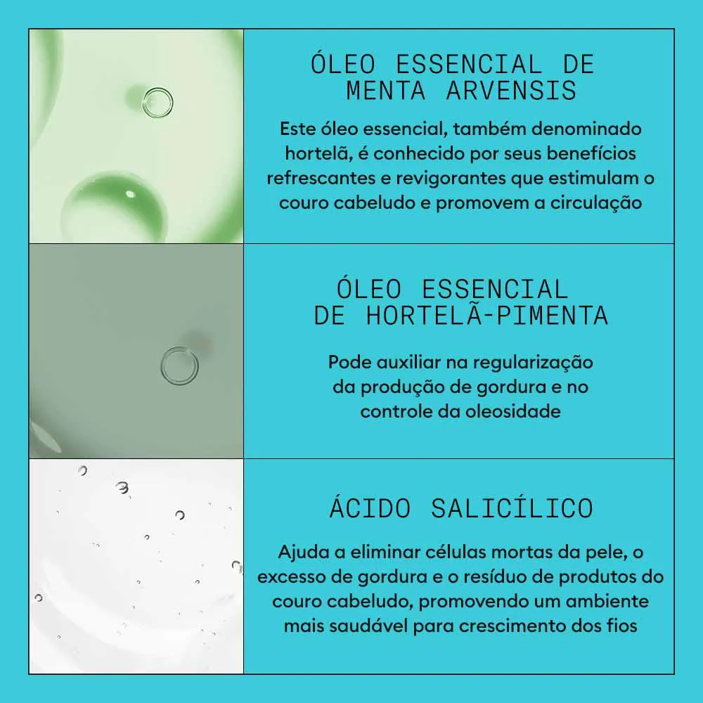 - Limpa profundamente o couro cabeludo e os cabelos.