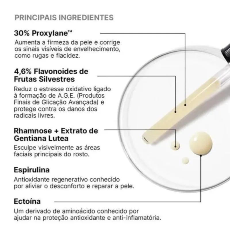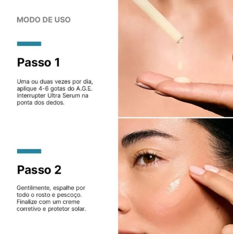 O Sérum Anti-Idade Skinceuticals A.G.E. Interrupter Ultra Serum é um tratamento avançado desenvolvido especialmente para combater os sinais do envelhecimento, como rugas profundas e flacidez facial, proporcionando efeito lifting visível em diferentes regiões do rosto e pescoço. Sua tecnologia inovadora V-SHAPE FACE atua elevando a estrutura da pele, estimulando intensamente a produção de colágeno superficial e profundo. Ideal para quem busca uma solução eficaz contra o envelhecimento cutâneo, esse sérum promove hidratação intensa com resultados comprovados já na primeira hora de uso. Indicado tanto para complementar procedimentos dermatológicos quanto como tratamento único anti-idade, ele garante melhora significativa da textura da pele.