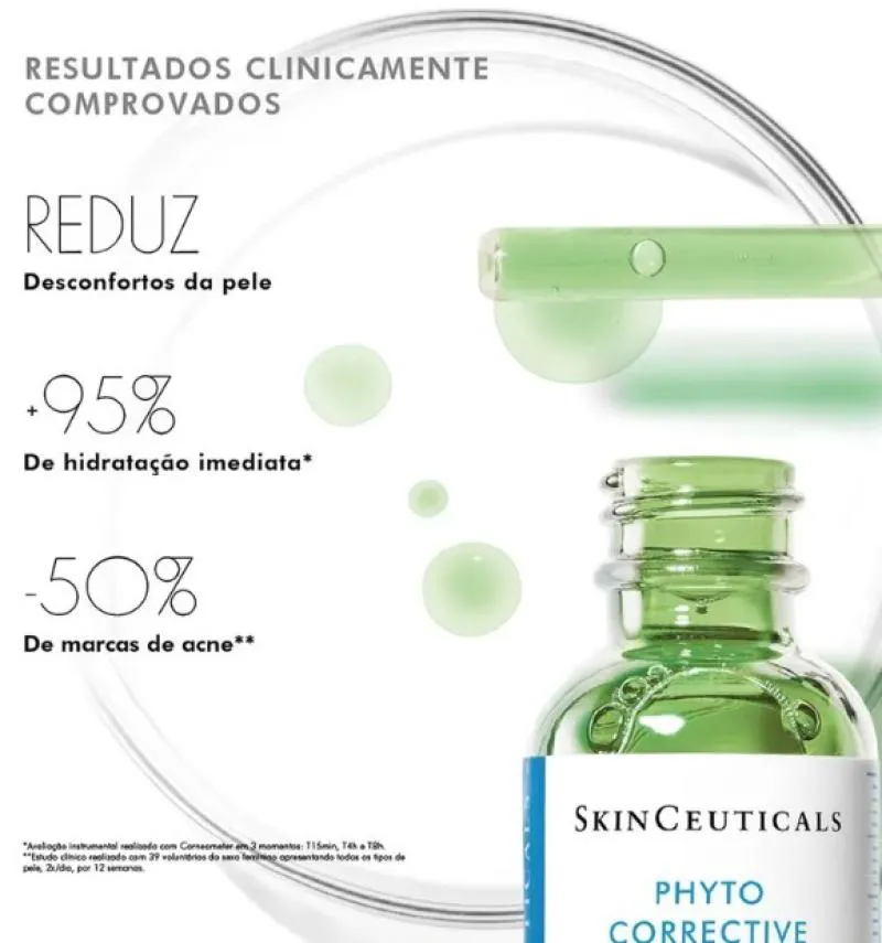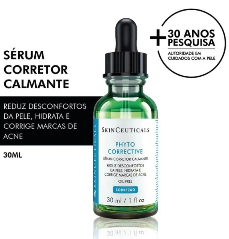 O Skinceuticals Phyto Corrective Sérum Corretor é um sérum corretor calmante com textura leve e não oleosa, formulado com uma combinação exclusiva de extratos botânicos, ácido hialurônico e glicerina. Serve para acalmar os desconfortos da pele, diminuir as marcas de acne e hidratar, sendo adequado para todos os tipos de pele, especialmente pele oleosa e sensível.