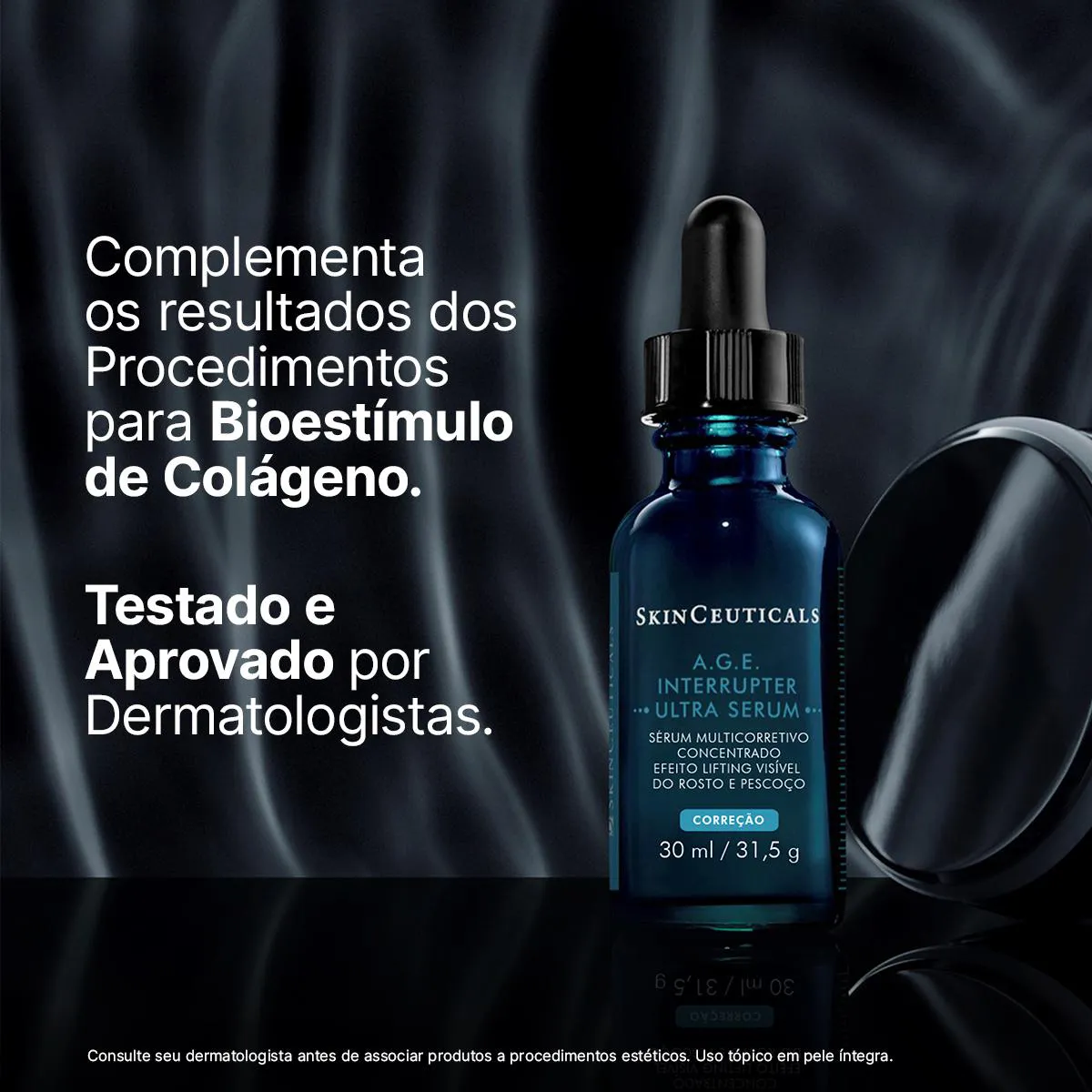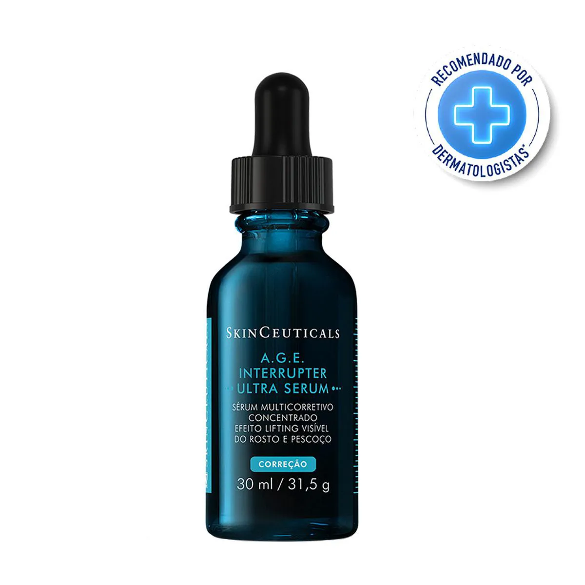 O Skinceuticals Age Interrupter Ultra Serum é um sérum anti-idade de alta performance desenvolvido para combater os principais sinais do envelhecimento facial. Com efeito lifting visível, ele atua na melhora da firmeza, elasticidade e estrutura da pele, do pescoço ao rosto. Sua fórmula avançada estimula a produção de colágeno e ajuda a corrigir até 16 sinais de envelhecimento, reduzindo rugas, linhas finas e olheiras aparentes. É indicado para todos os tipos de pele, inclusive as sensíveis.