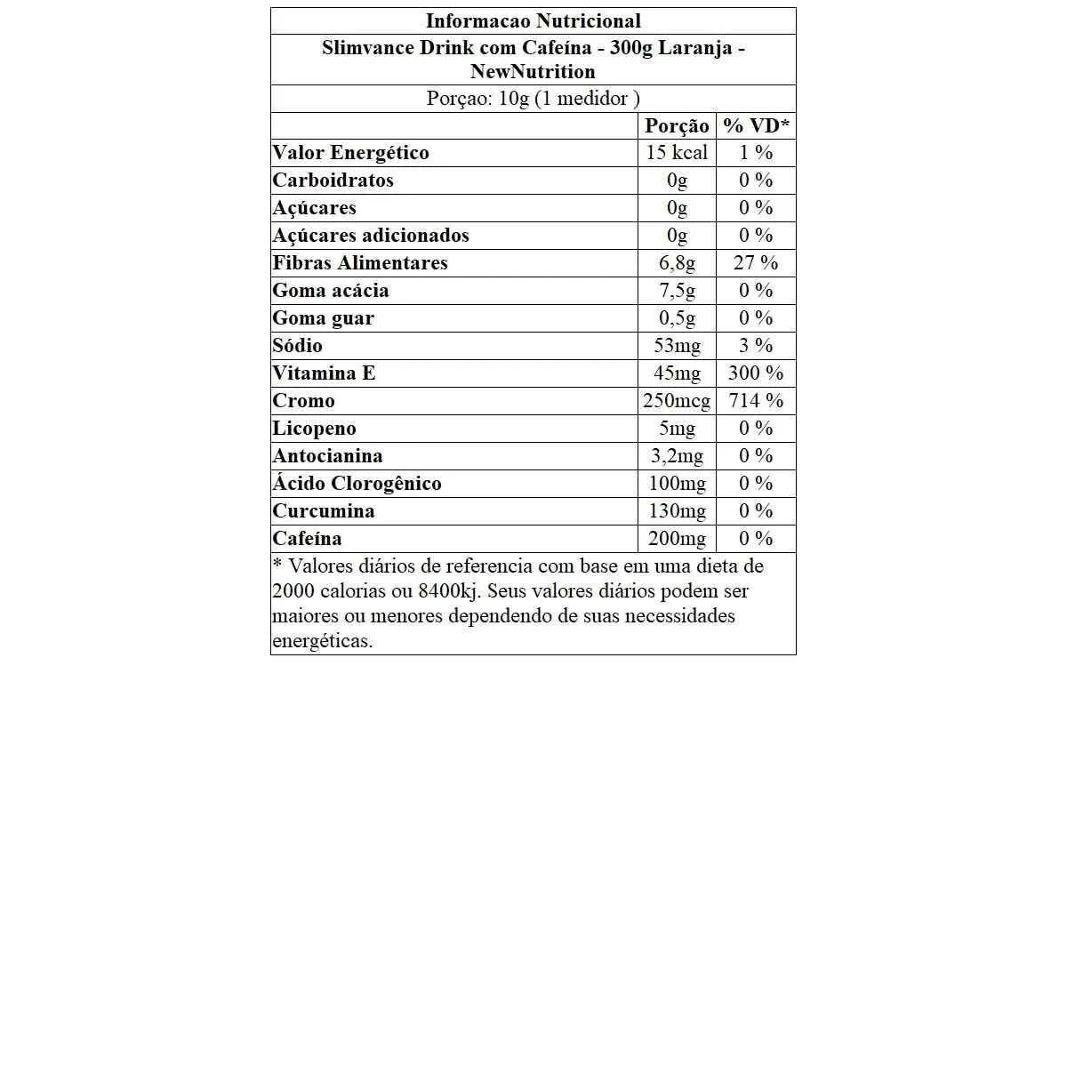 Slimvance Drink com Cafeína - 300G Laranja - Newnutrition
