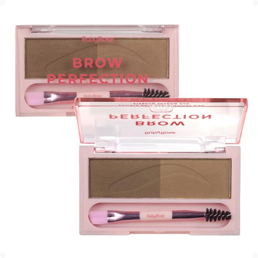 Descubra o segredo para sobrancelhas impecáveis com a Sombra para Sobrancelhas Duo Ruby Rose Brow Perfection Dou 01 HB-E2501-1. Este duo de