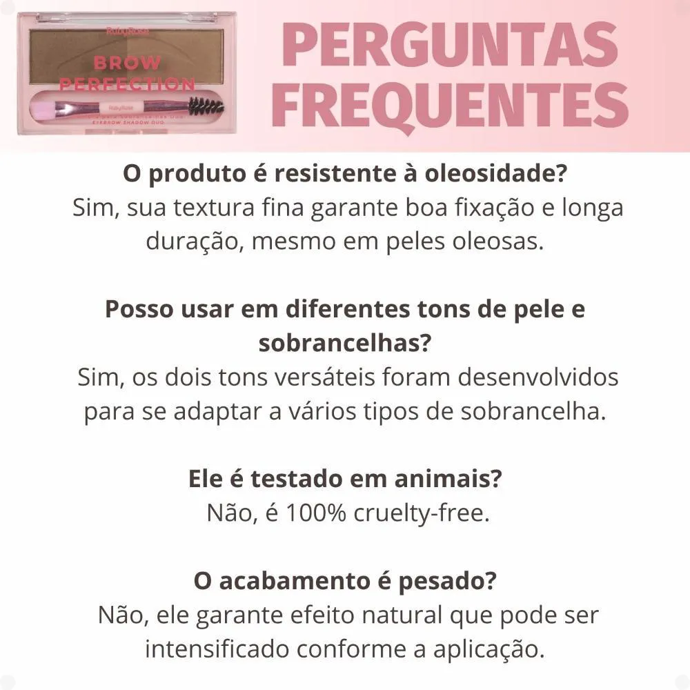 sombras, desenvolvido pela renomada RUBY ROSE, é a chave para realçar seu olhar, preenchendo falhas e definindo o formato ideal das suas sobrancelhas. Com sua textura fina e longa duração, você conquista um visual natural e sofisticado em instantes, elevando sua beleza e autoconfiança. Ideal para quem busca praticidade e resultados profissionais, o Brow Perfection Dou 01 é o toque final que faltava na sua make, além de ser cruelty-free, garantindo beleza com responsabilidade.