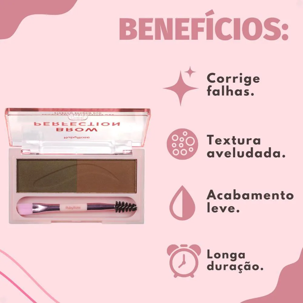 Descubra o segredo para sobrancelhas impecáveis com a Sombra para Sobrancelhas Duo Ruby Rose Brow Perfection Dou 03 HB-E2501-3. Este duo de