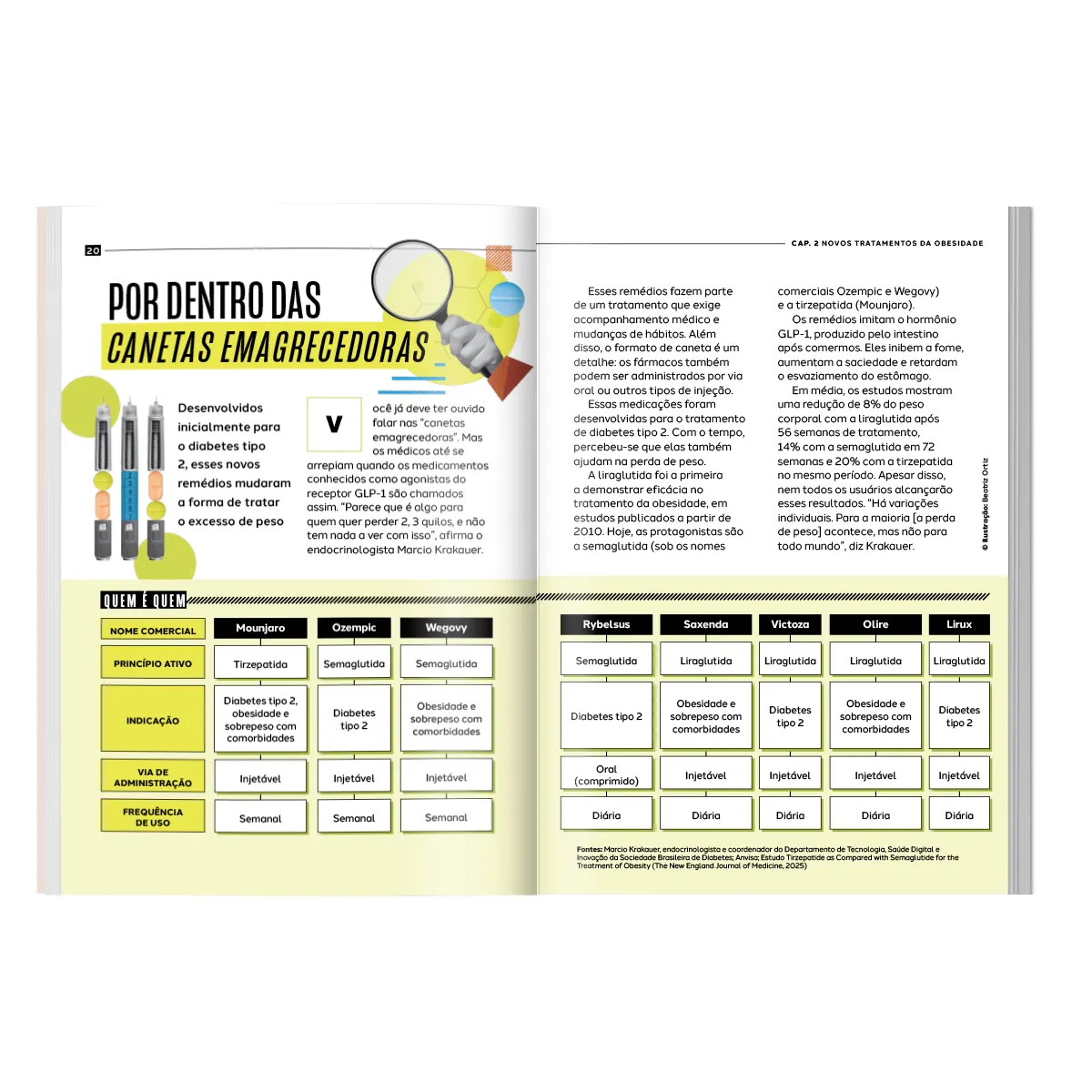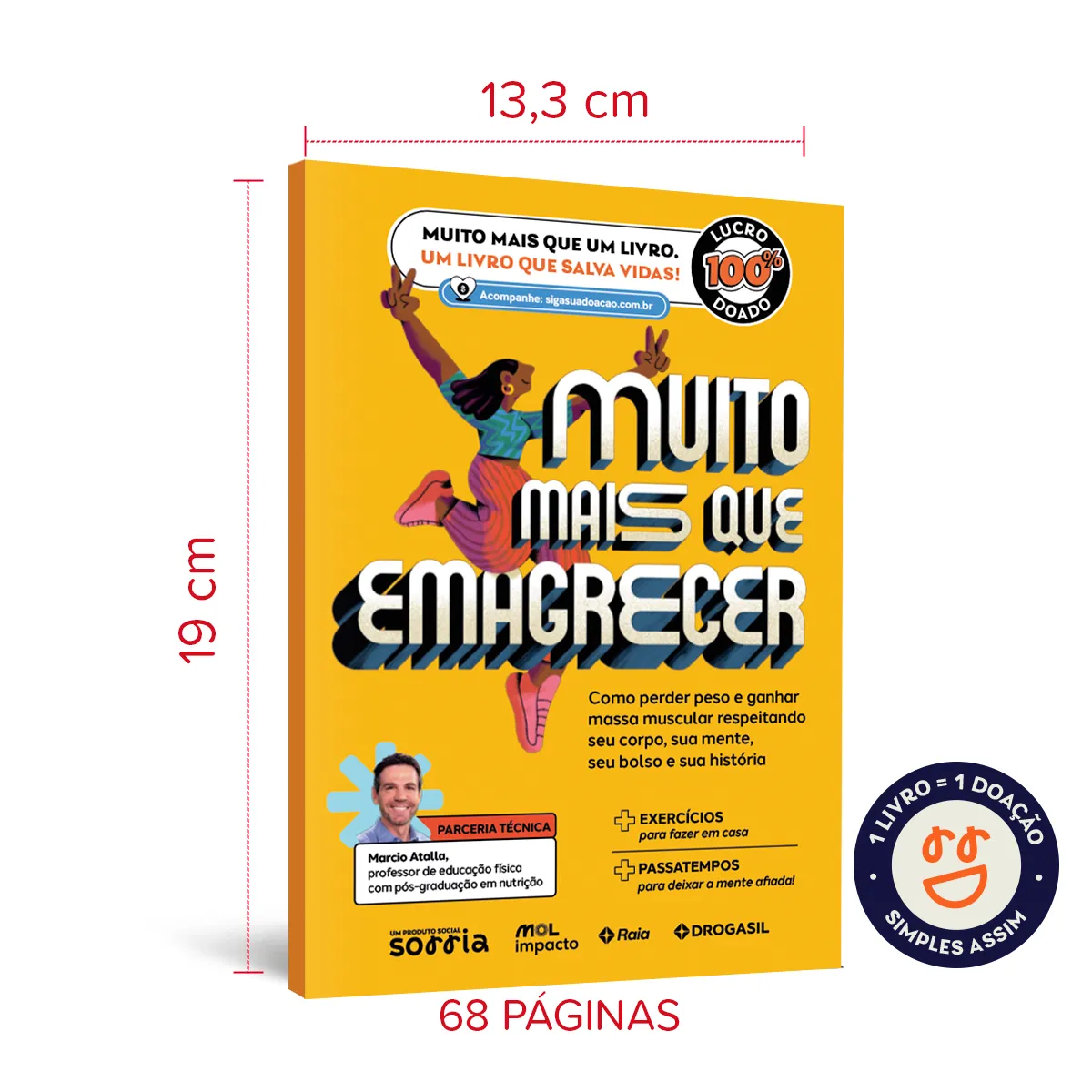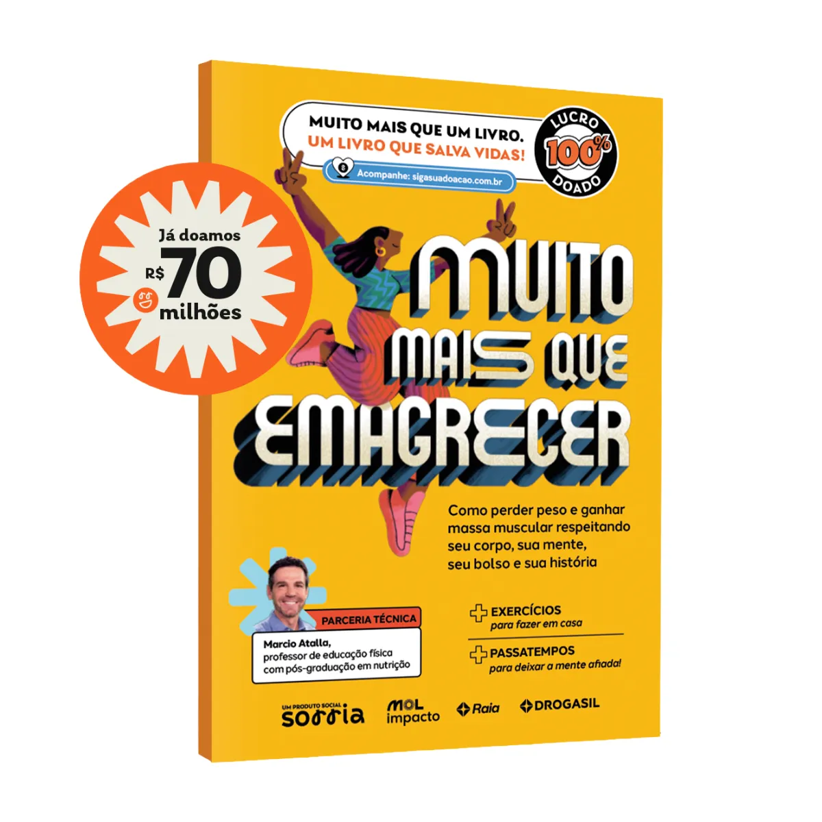 Com parceria técnica de Marcio Atalla, o título aborda o emagrecimento saudável, ganho de massa muscular, alimentação acessível e saúde mental. Também explica, de forma clara e responsável, o que a ciência diz sobre os novos tratamentos para obesidade, como as chamadas canetas emagrecedoras. Além do conteúdo informativo, o livro traz exercícios simples para fazer em casa e passatempos interativos.