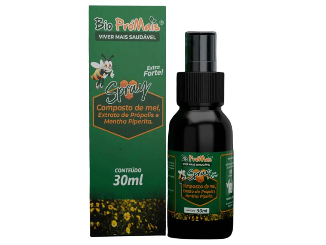 Spray Composto de Mel Propolis e Menta Piperita 30Ml Biopromais