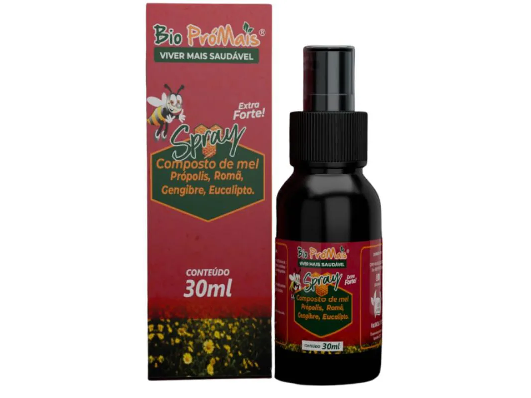 O spray Extra Forte BioProMais combina o melhor da natureza em uma fórmula sinérgica com própolis, mel, romã, gengibre e eucalipto — ingredientes reconhecidos por suas ações anti-inflamatórias, antioxidantes e descongestionantes.