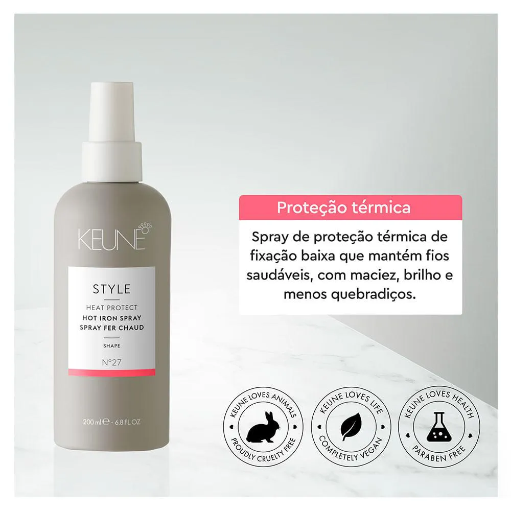 O spray de Proteção Térmica Style Hot Iron Keune é indicado especialmente para uso de chapinha e babyliss.