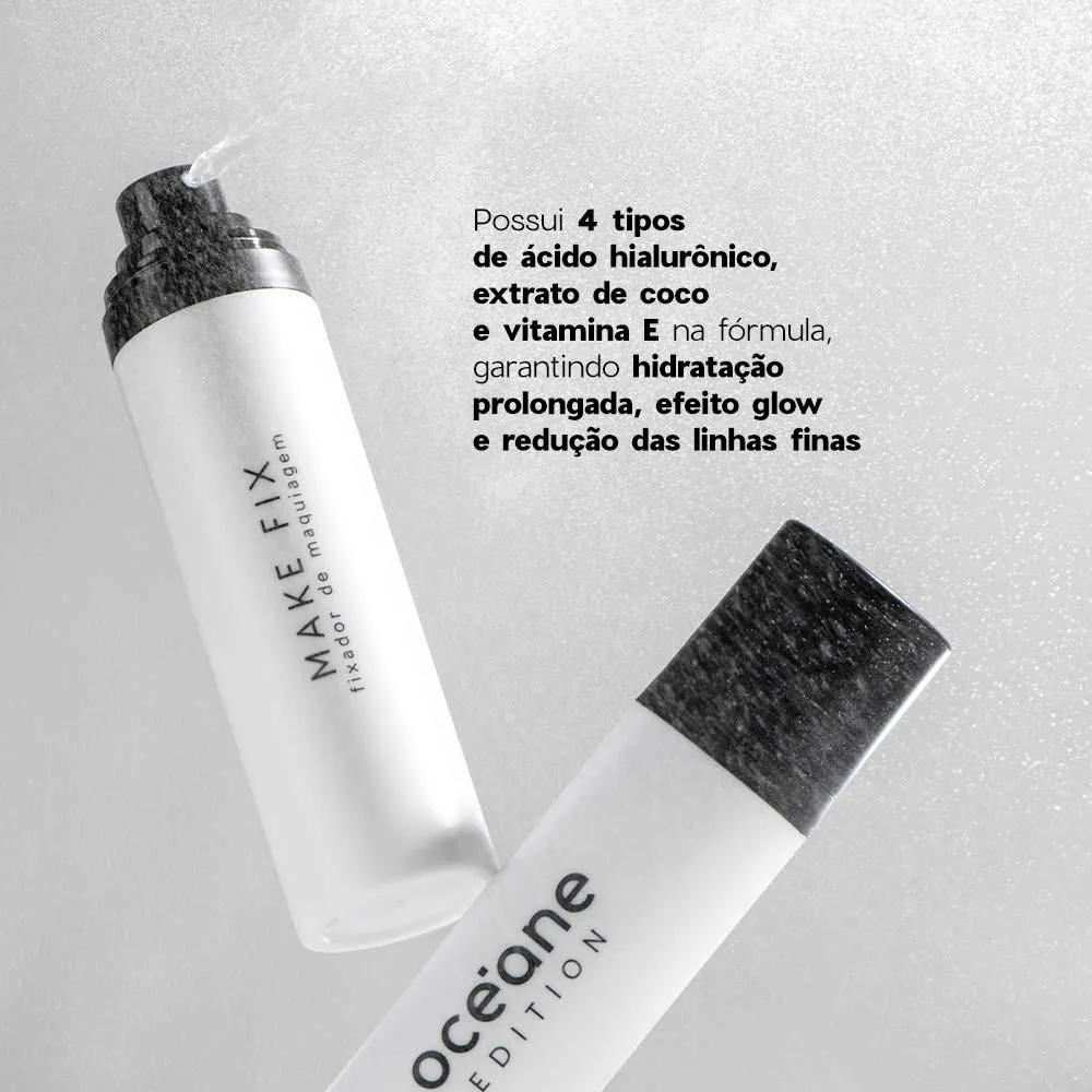 Muito mais do que prolongar a sua produção, o Make Fix Océane vai deixar a pele mais fresca e calma, além de conter ativos 4 tipos de ácido hialurônico em sua formulação para uma pele sempre hidratada. Ele também é enriquecido com vitamina E, que ajuda a suavizar as linhas de expressão graças à sua ação antioxidade. Tudo de bom, né?