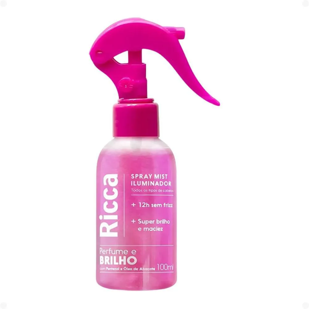 spray Mist Iluminador Ricca Perfume e Brilho 100mlO Spray Mist Iluminador Ricca Perfume e Brilho 100ml da BELLIZ COMPANY é a solução perfeita para quem busca brilho intenso e um perfume delicioso que dura o dia todo. Com uma fórmula enriquecida com Pantenol e Óleo de Abacate, este spray inovador proporciona fios macios, iluminados e com um toque de frescor inigualável. Mantenha o frizz sob controle por até 12 horas, deixando seus cabelos radiantes em qualquer ocasião.