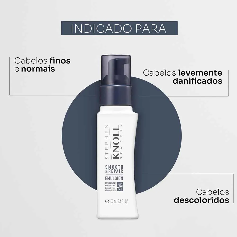 A Smooth & Repair Emulsion é uma emulsão suavizante, a escolha perfeita para quem tem cabelos finos, normais ou levemente danificados, oferecendo suavidade e controle com uma hidratação leve e duradoura que não pesa nos fios. Esta fórmula inovadora repara os danos enquanto protege contra agressões futuras, garantindo uma maciez incomparável e total maleabilidade.