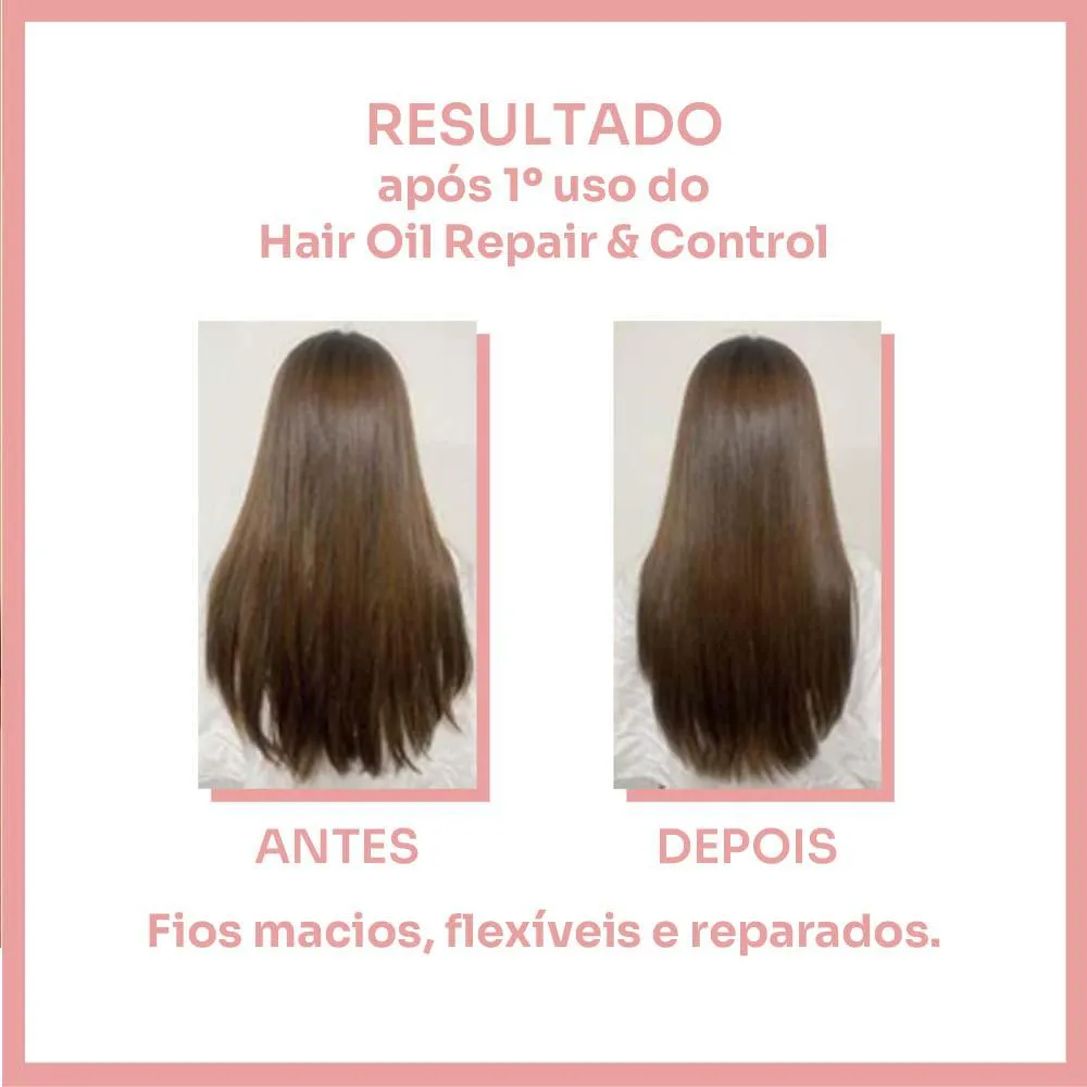O Repair & Control Hair Oil é único por sua fórmula exclusiva que aumenta a resistência dos fios, e oferece defesa contra os raios UV e ferramentas térmicas, além de controlar o frizz e reduzir os danos causados por atrito com o travesseiro ou escovação. Formulado com a extraordinária fusão de óleo de argan, jojoba e amêndoas, uma tríade poderosa que além de nutrir intensamente a fibra, também realiza a reparação profunda da cutícula danificada, revelando fios revitalizados e maleáveis.