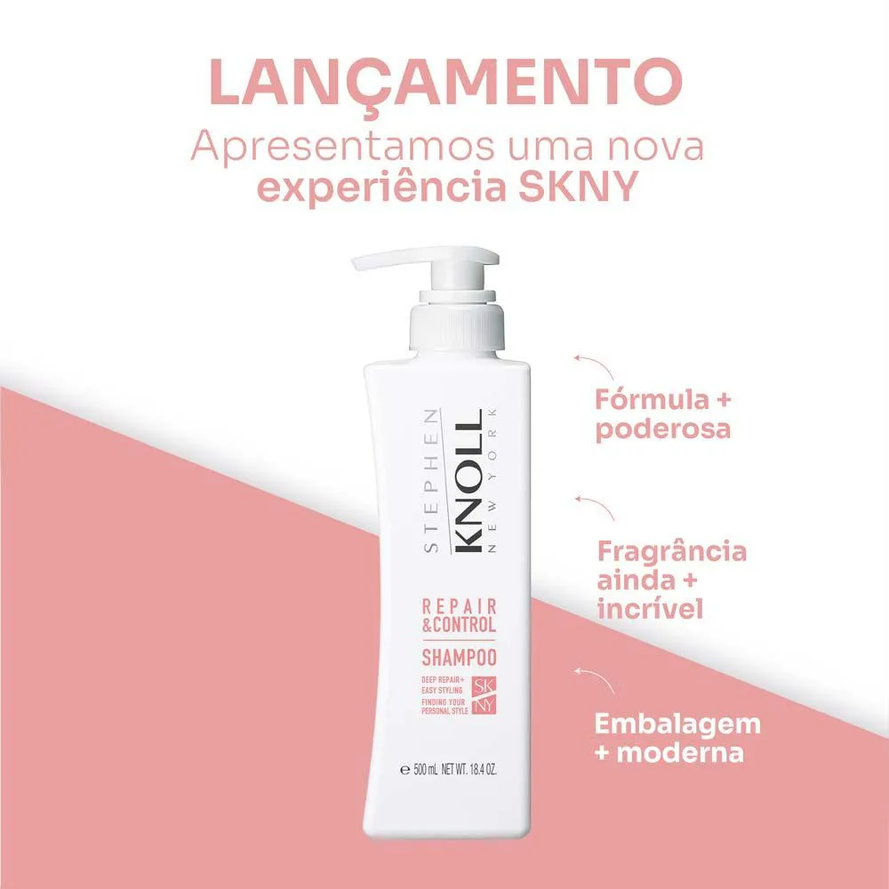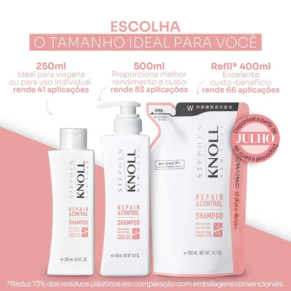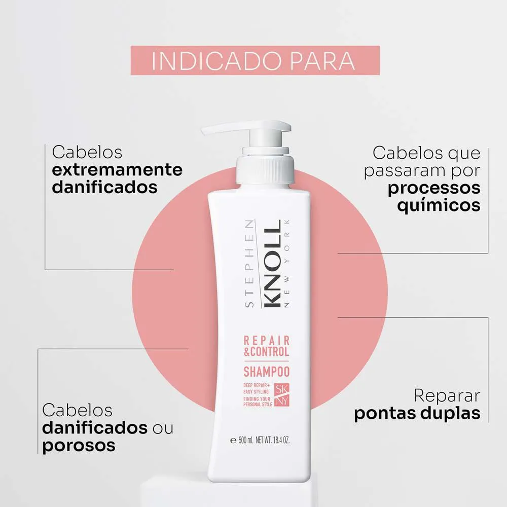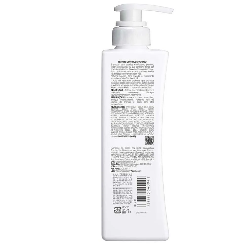Formulado com tecnologia japonesa nos laboratórios da Kosé, o shampoo Repair & Control Stephen Knoll repara cabelos danificados, porosos, super processados ou que sofreram danos por processos químicos.