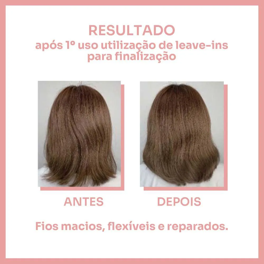 Repara a fibra capilar interna, deixa os fios mais resistentes a quebra e devolve flexibilidade e alinhamento dos fios.